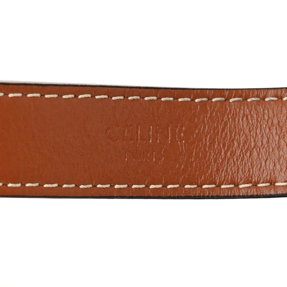 This Celine Small Ava Triomphe Shoulder Bag in White combines canvas and calfskin leather. Gold hardware complements its minimalist design. Compact and lightweight, it’s perfect for carrying essentials with style.