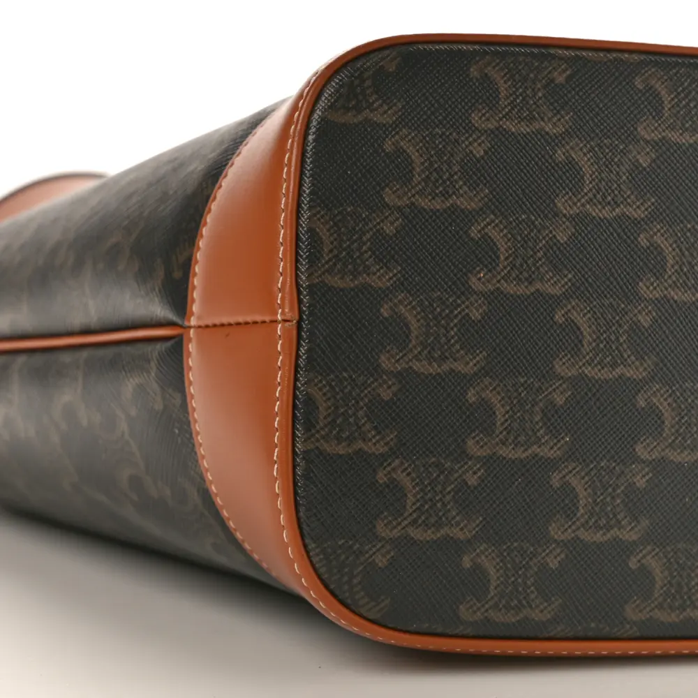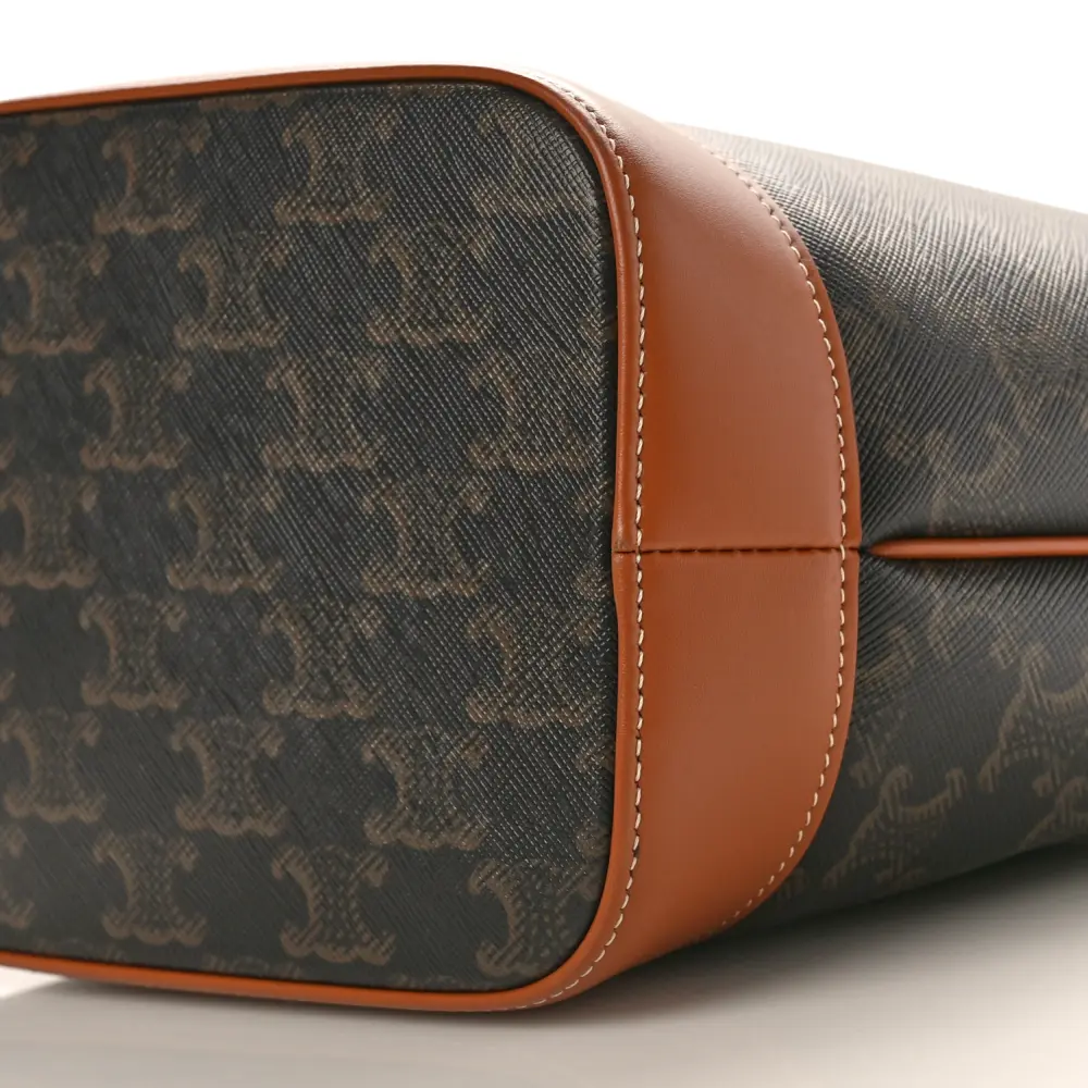 Celine Small Bucket Bag Tan Triomphe Canvas & Calfskin Leather Gold Hardware