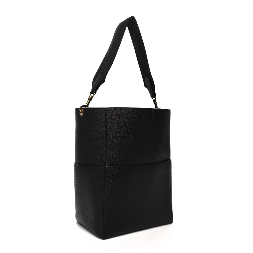 Celine Small Sangle Bucket Bag Black Soft Grained Calfskin Leather Gold Hardware