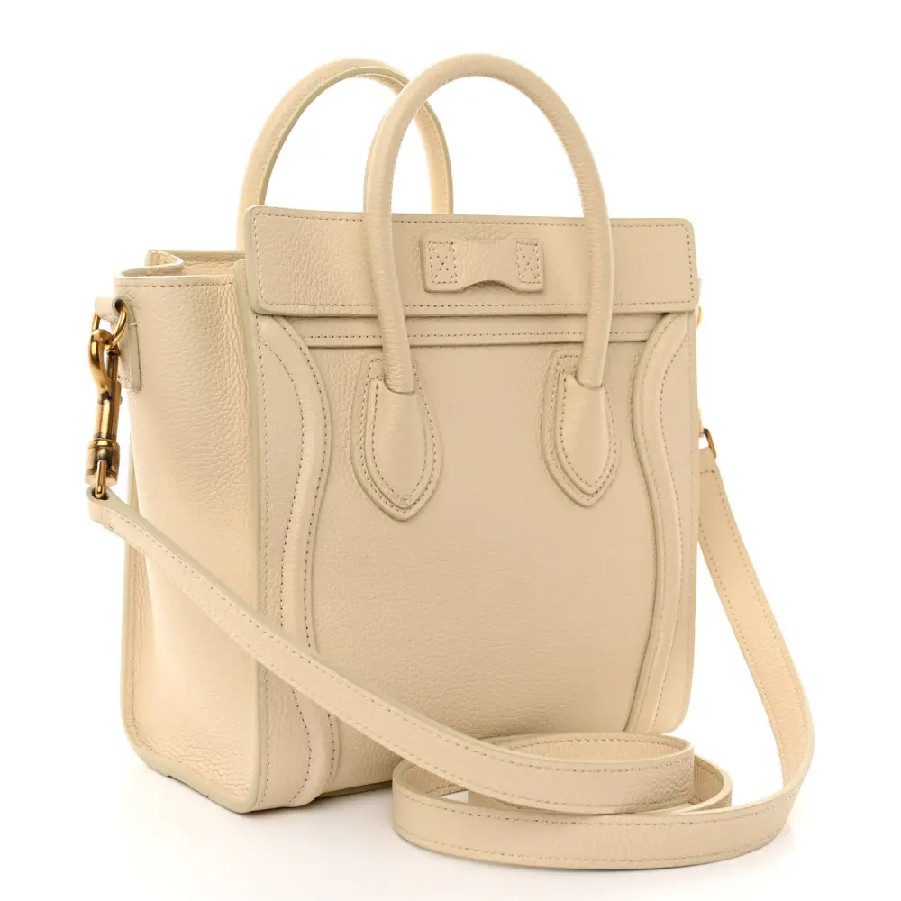 Celine Nano Luggage Bag Ivory Drummed Calfskin Leather