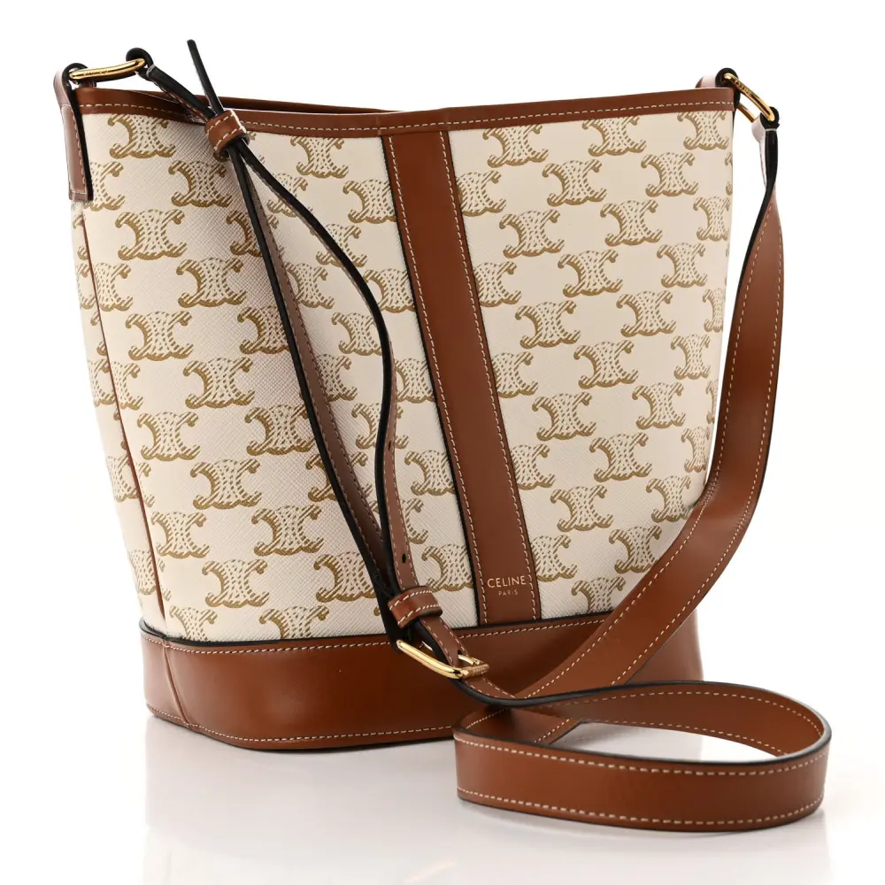 Celine Small Bucket Bag Tan Triomphe Canvas & Calfskin Leather Gold Hardware