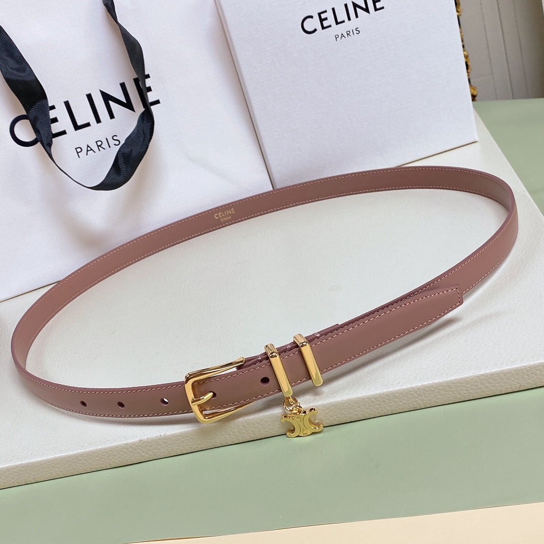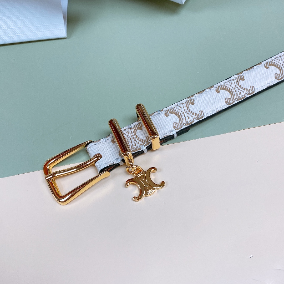 Celine Elegant Charm Belt In White/Black/Pink/Champagne Gold/Brown Taurillon Leather With Gold Hardware 18mm