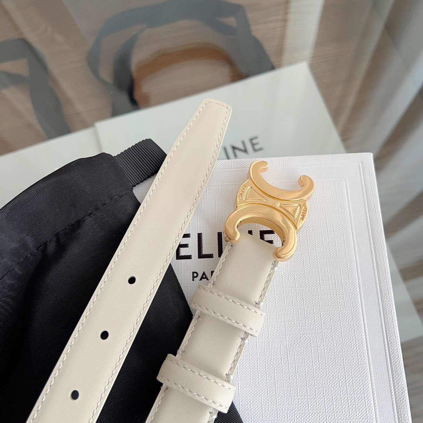 Celine Triomphe Buckle Revesible Belt In Burgundy/Red/Blue/Pink/White/Brown/Black Calfskin With Gold Hardware 25mm