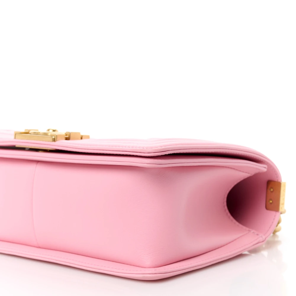 • Chanel Boy Flap Medium Light Pink Quilted Calfskin Leather Aged Gold Hardware