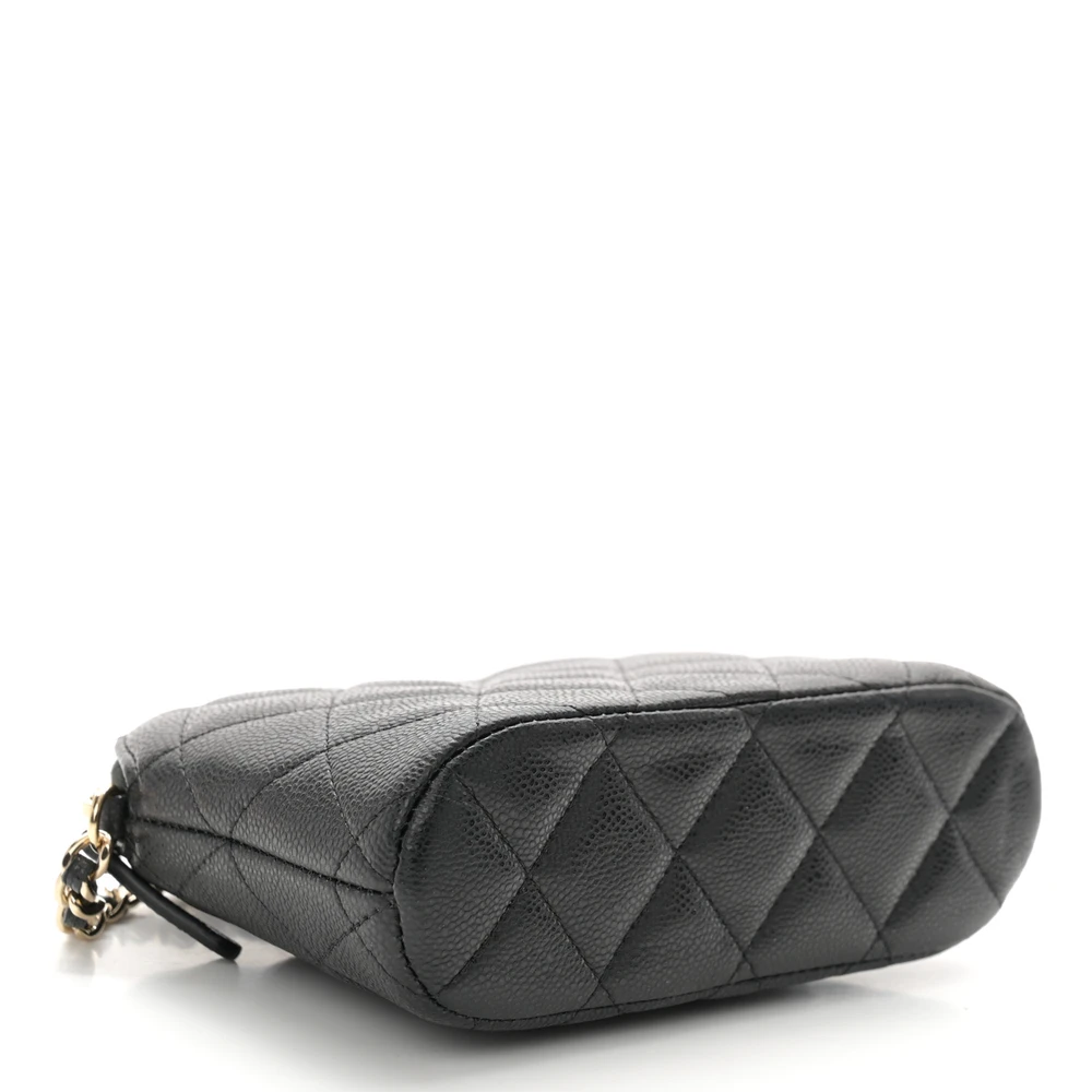 Chanel Classic Clutch With Chain Small Black Quilted Caviar Leather Light Gold Hardware