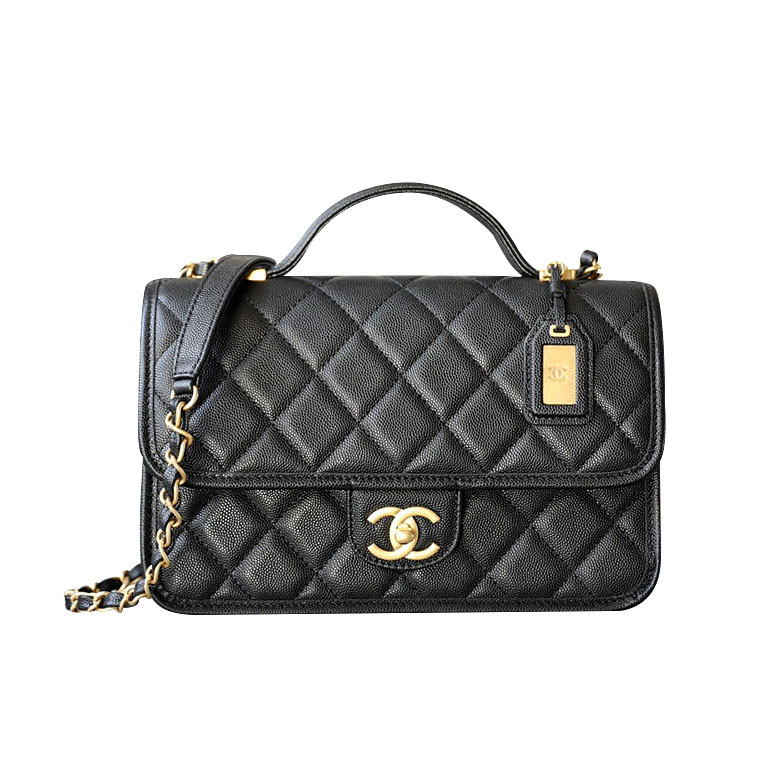 Chanel Black Quilted Caviar Leather 20.5cm / 25cm Crossbody Bags Top-Handle Bags