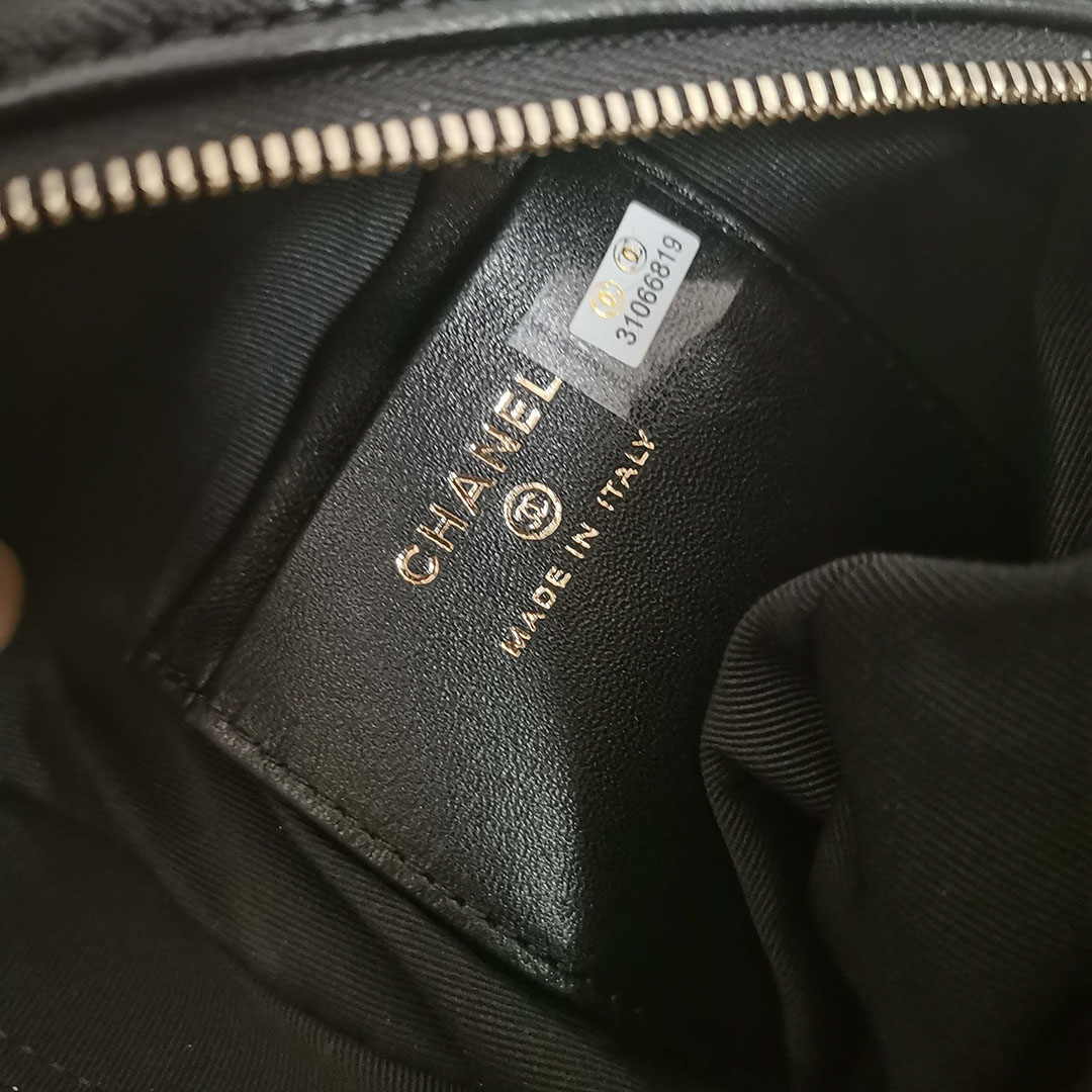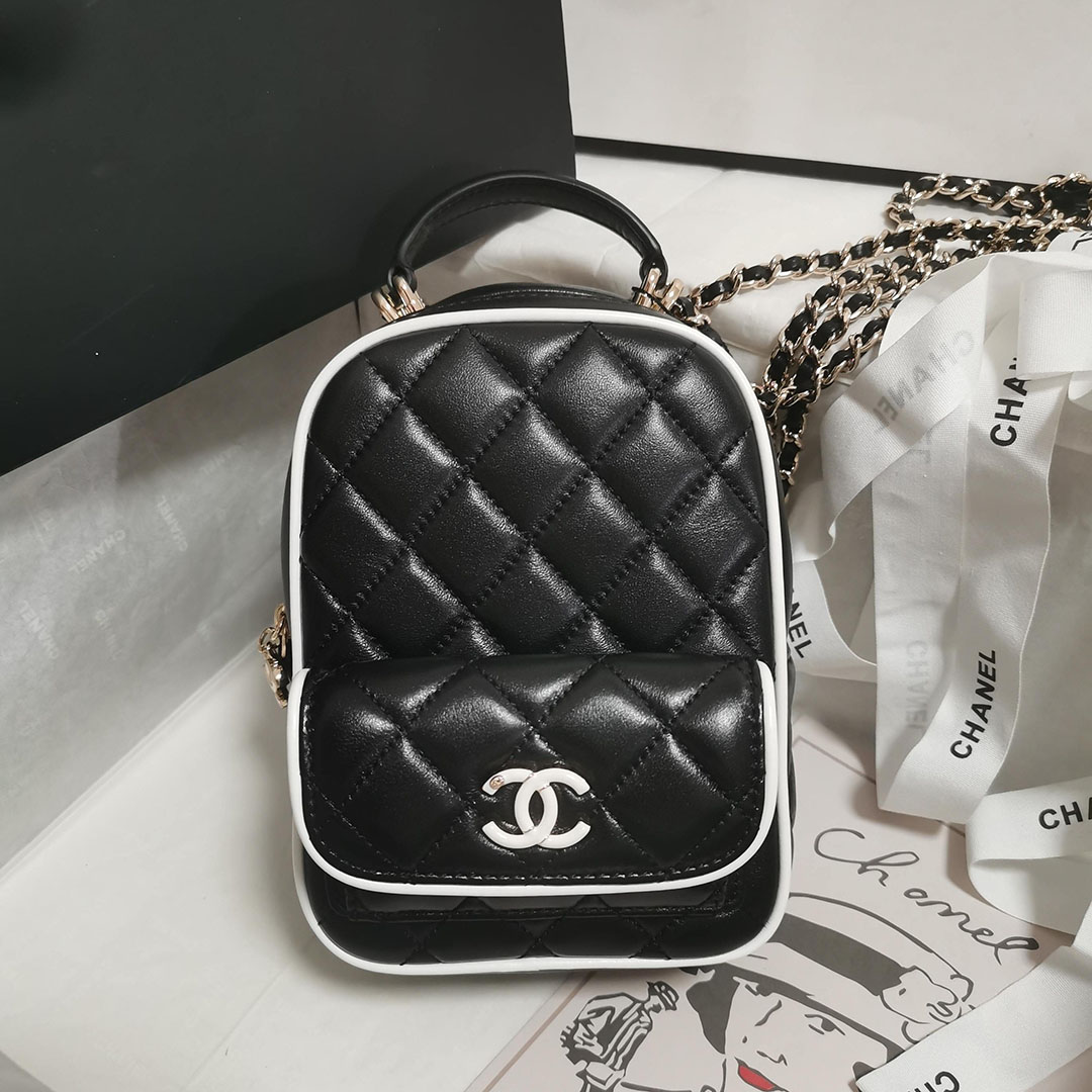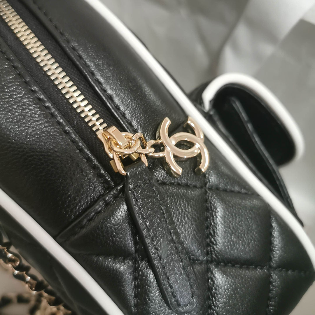 Chanel Black / White Quilted Lambskin Leather