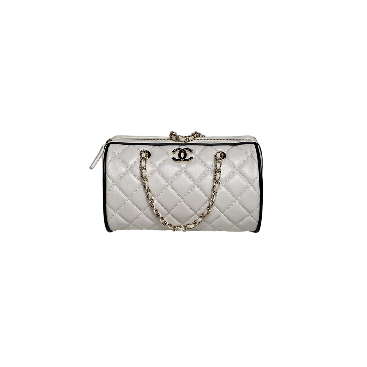 Chanel Black / White Quilted Lambskin Leather Crossbody Bags