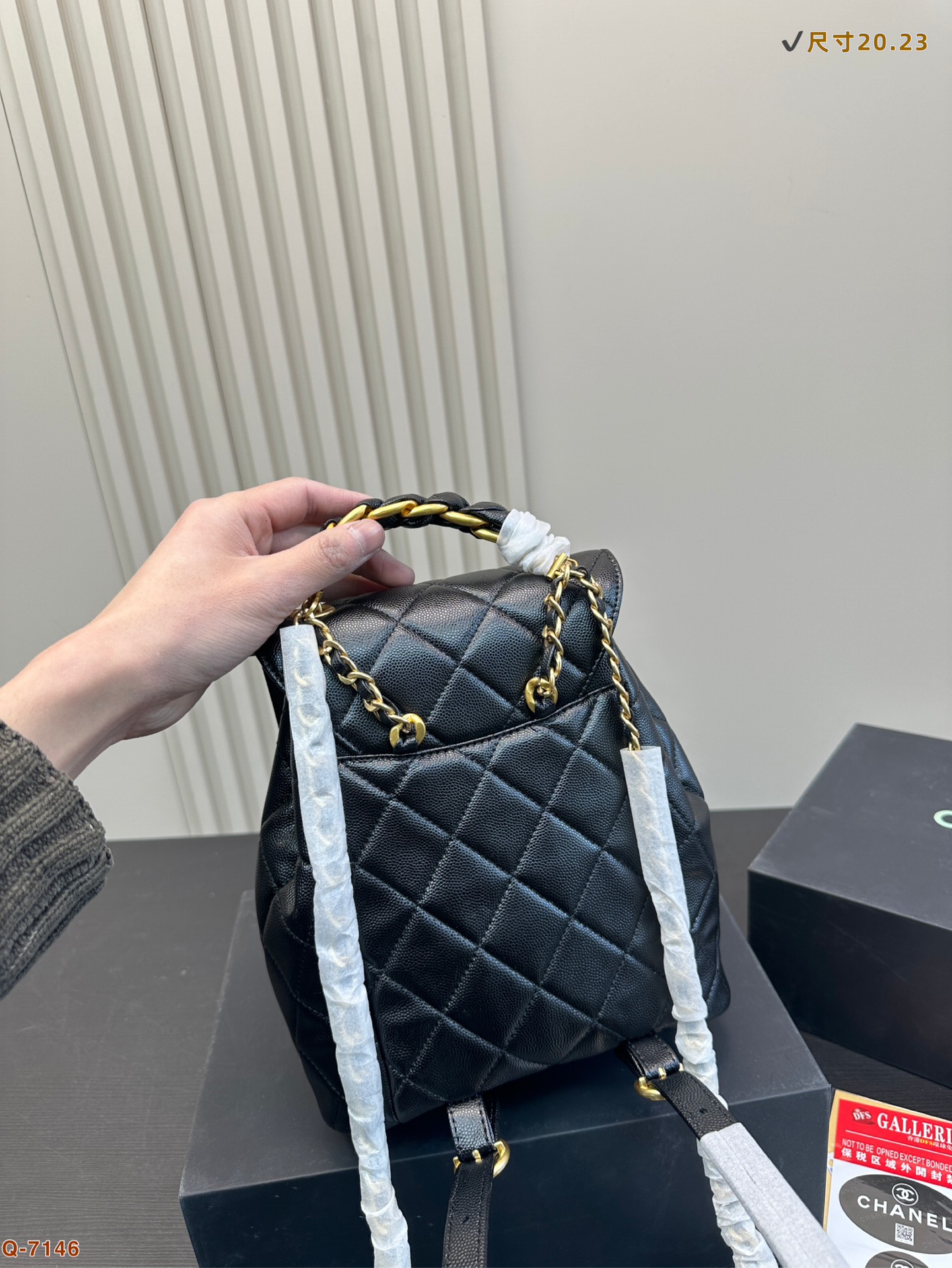 • Chanel Black / White / Red / Apricot color Quilted Lambskin Leather Backpacks