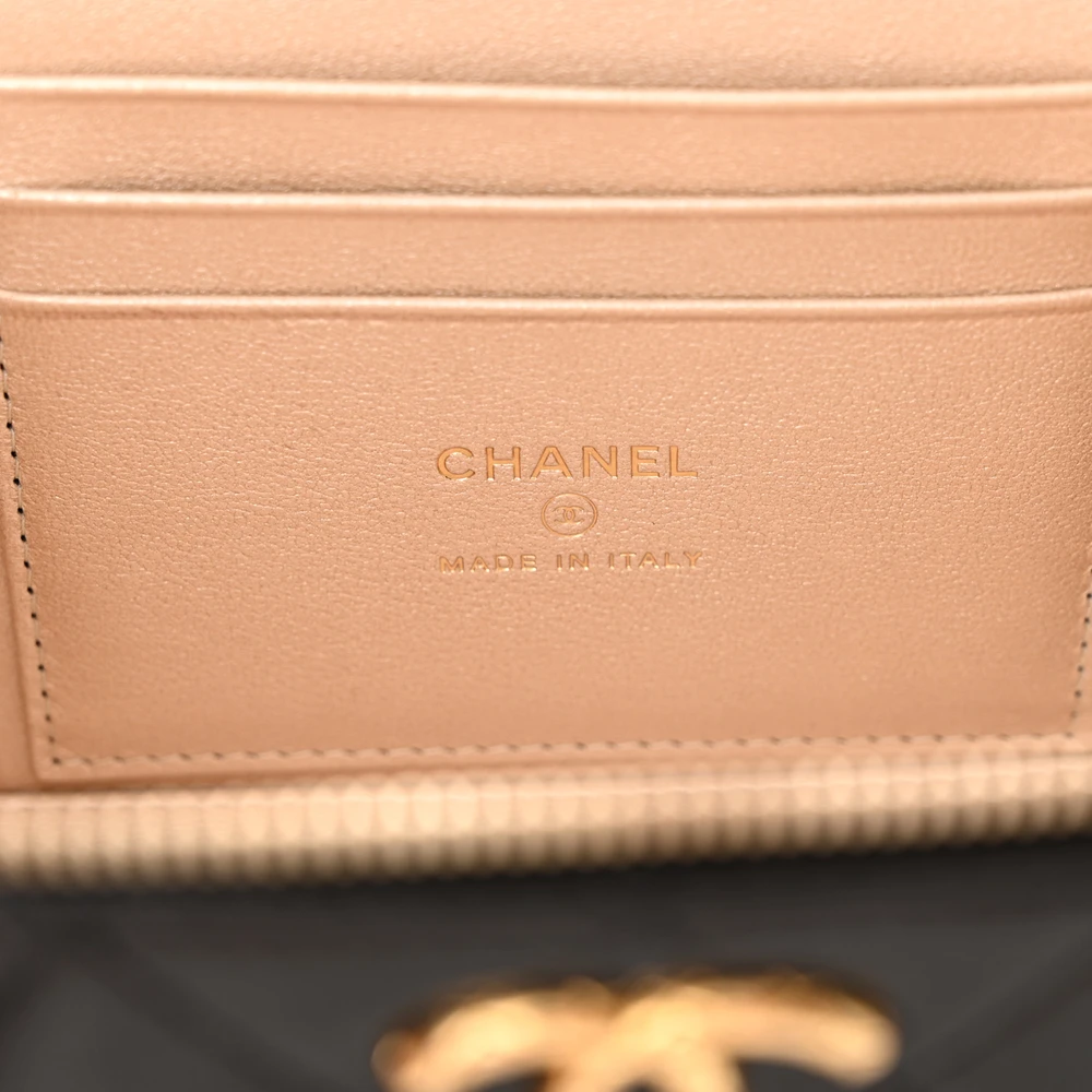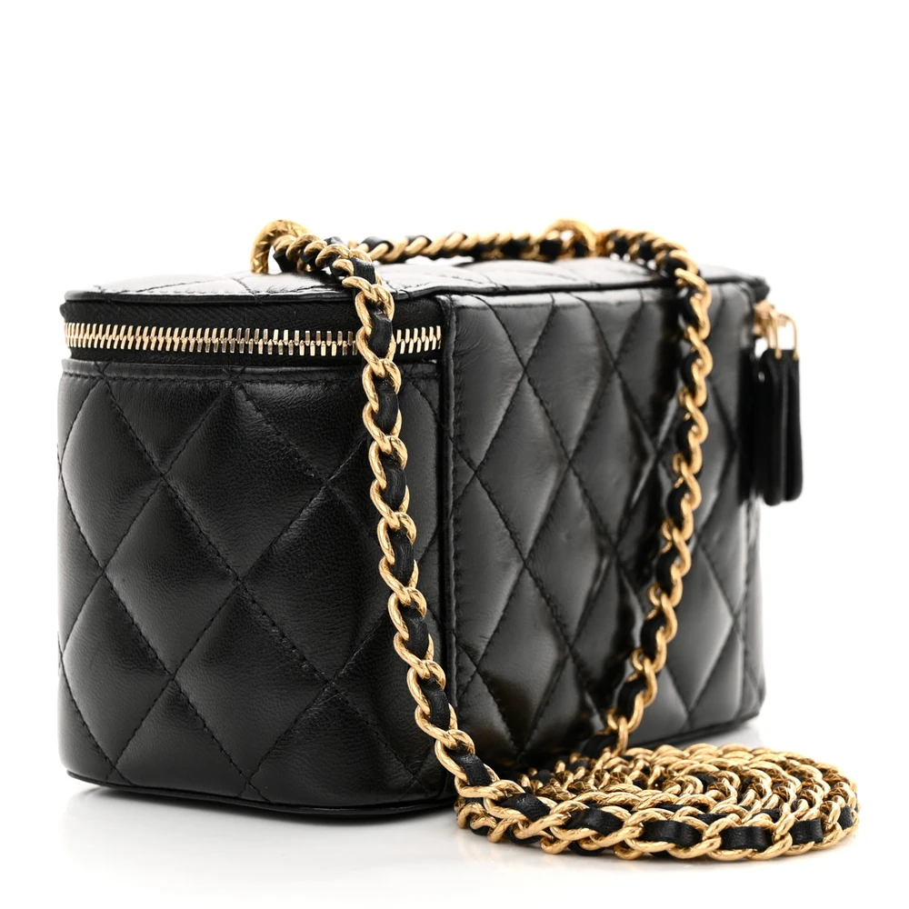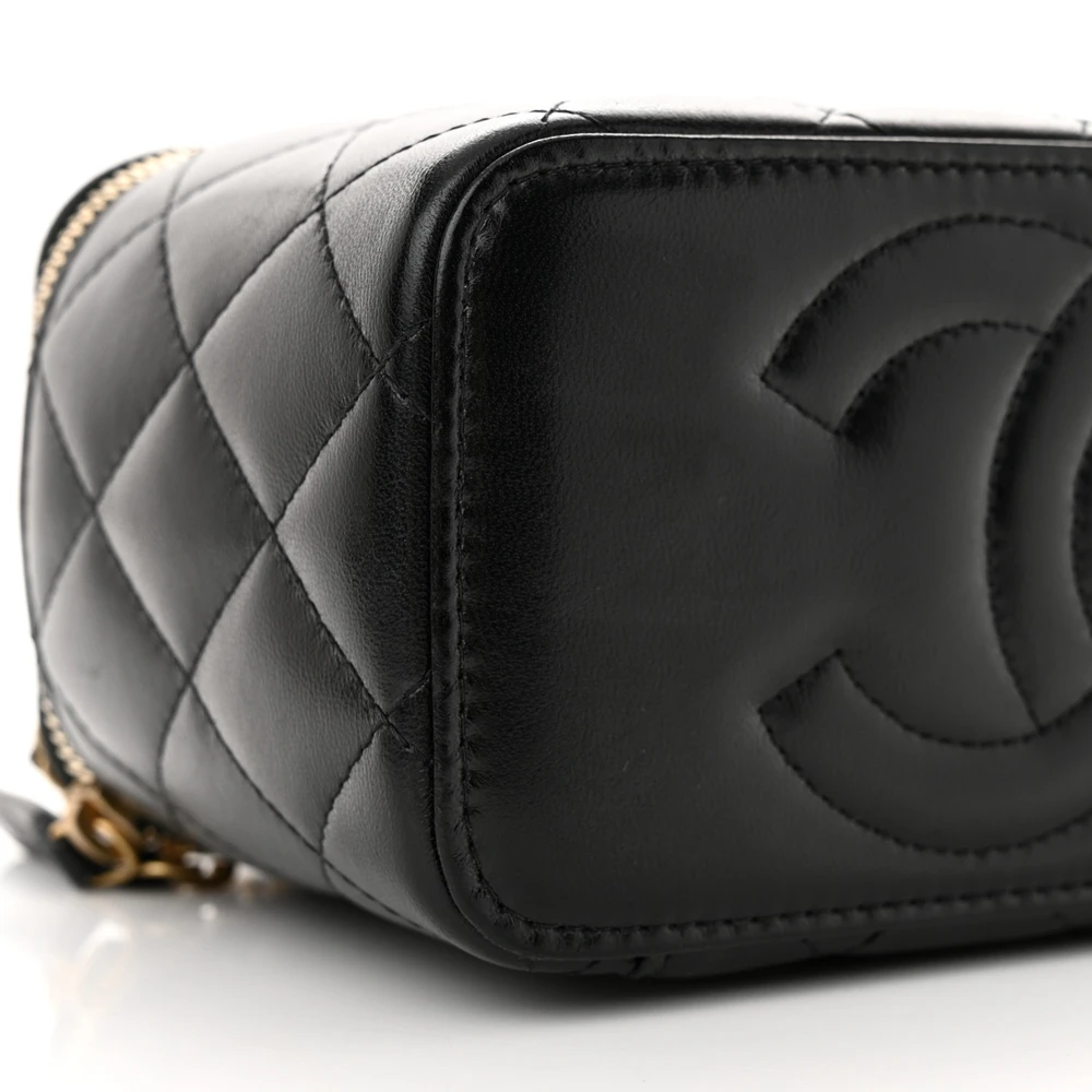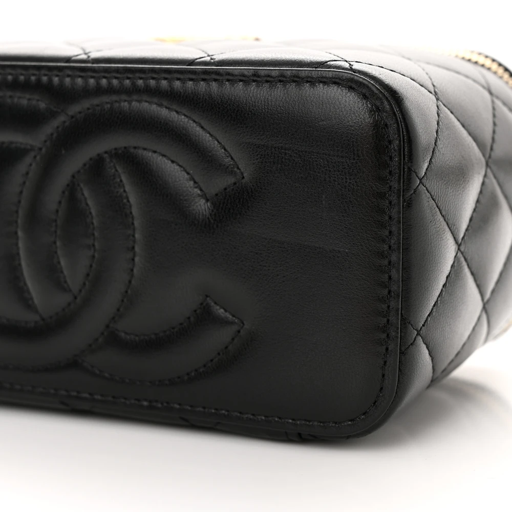 Chanel CC Dynasty Vanity Case Small Black Quilted Lambskin Leather Gold Hardware