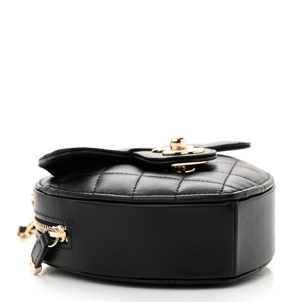 Chanel CC In Love Heart Clutch With Chain Small Black Quilted Lambskin Leather Light Gold Hardware
