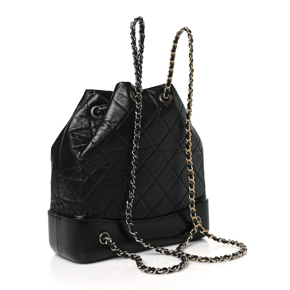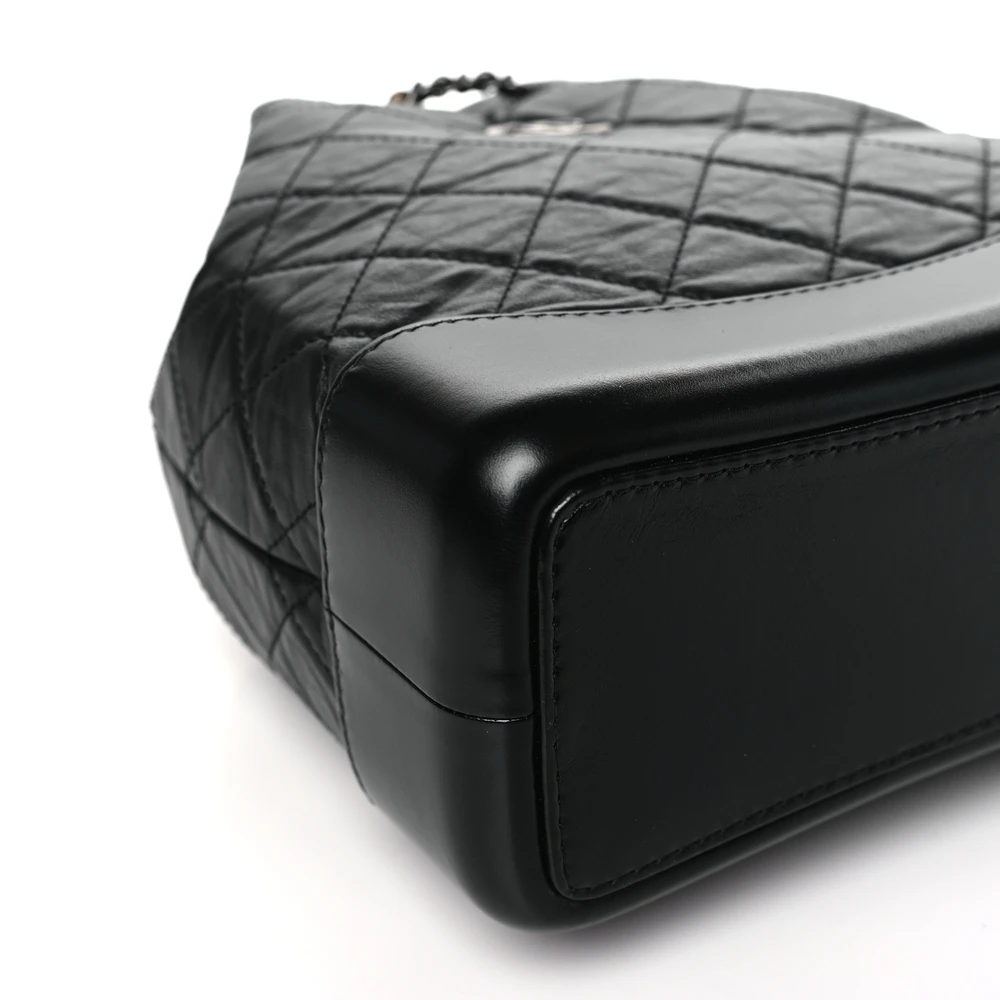 Chanel Gabrielle Backpack Small Black Quilted Aged Calfskin Leather Mixed Metal Hardware