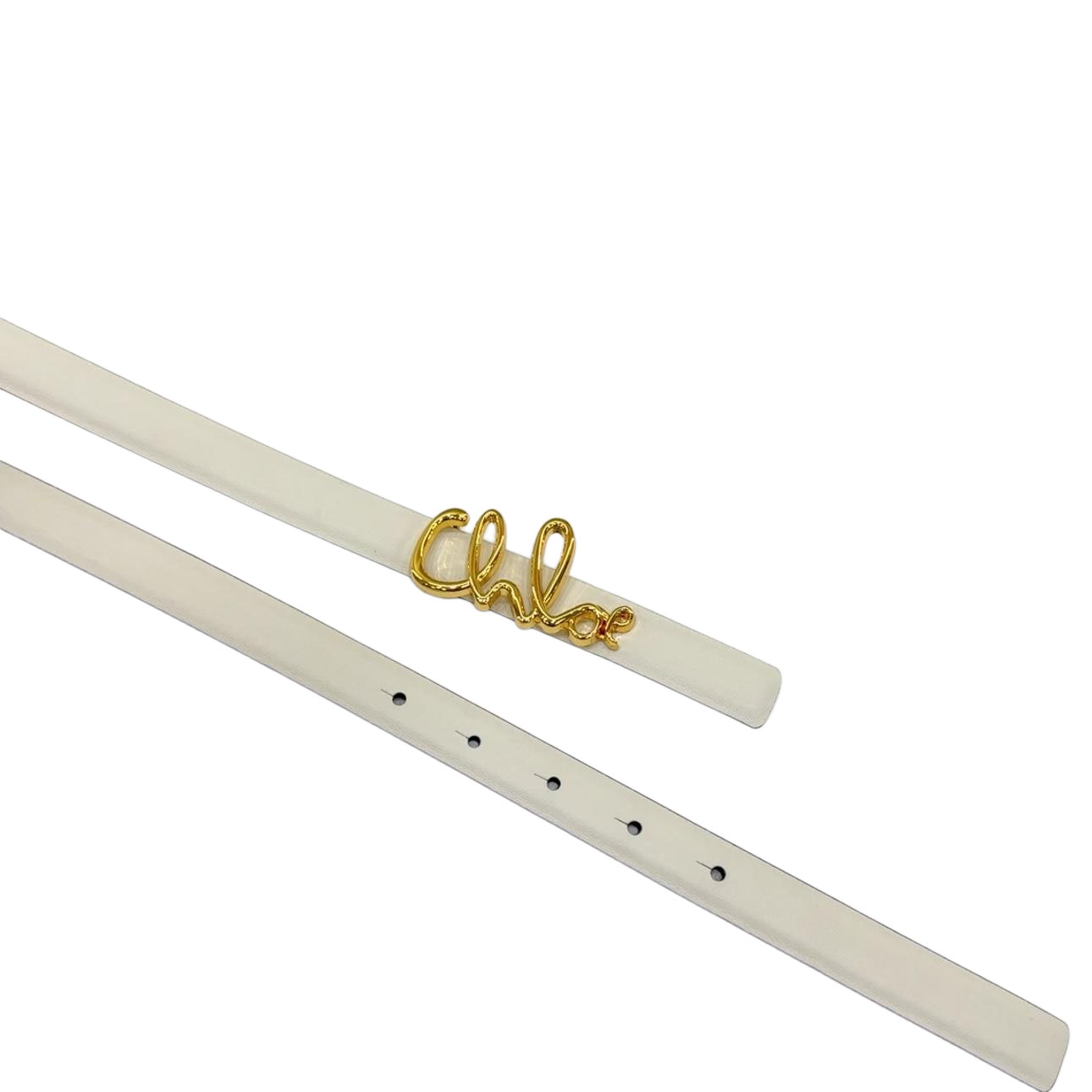 • Chloe Logo Buckle Belt In White/Blue/Green/Orange/Black/Pink Calfskin With Gold Hardware 20mm