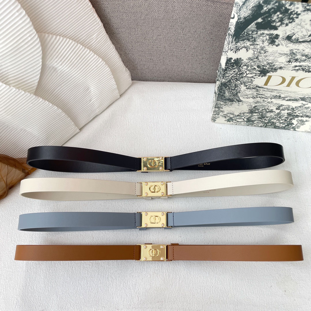 Dior Women’ s Square Buckle Belt In Black/White/Brown/Blue Calfskin With Gold Hardware 20mm