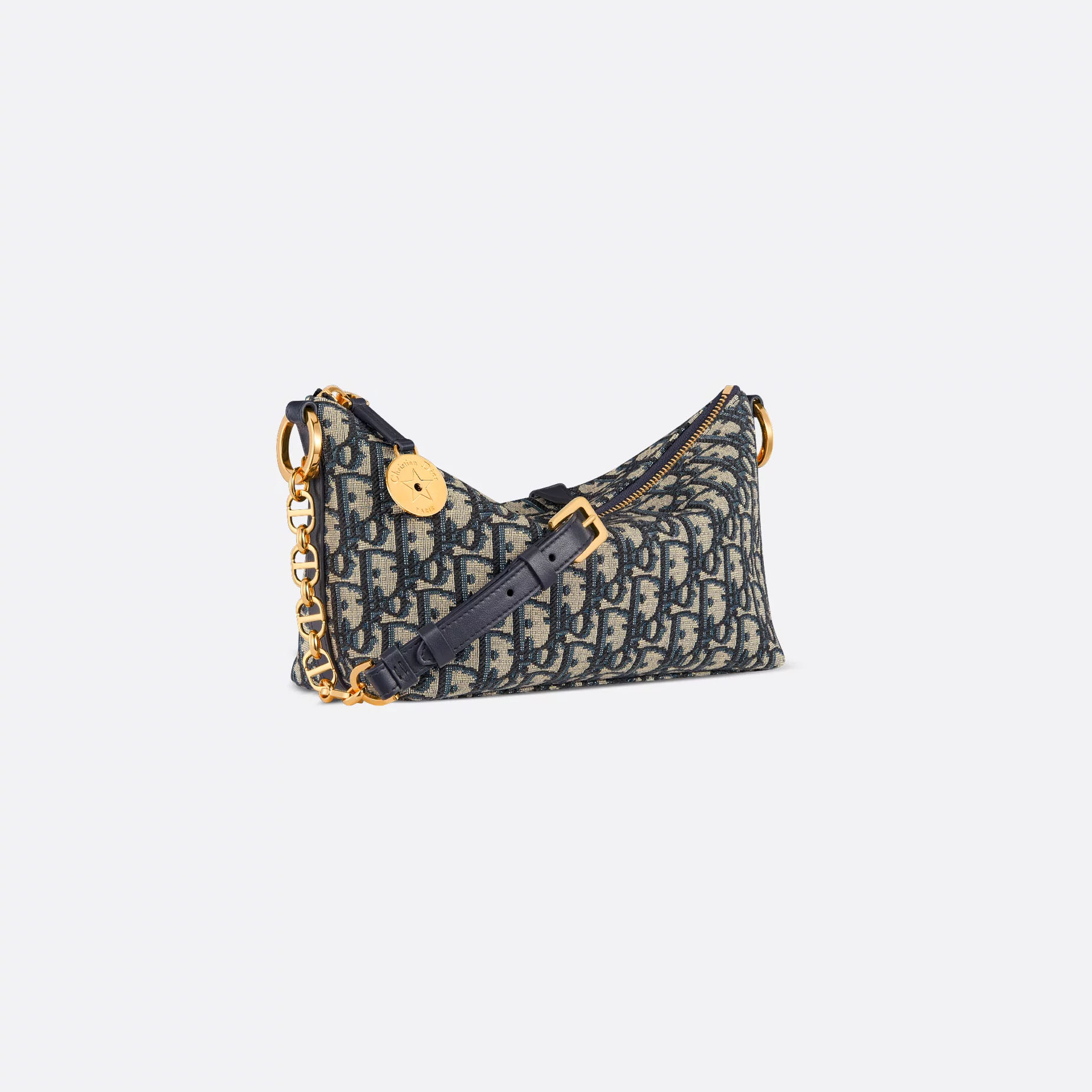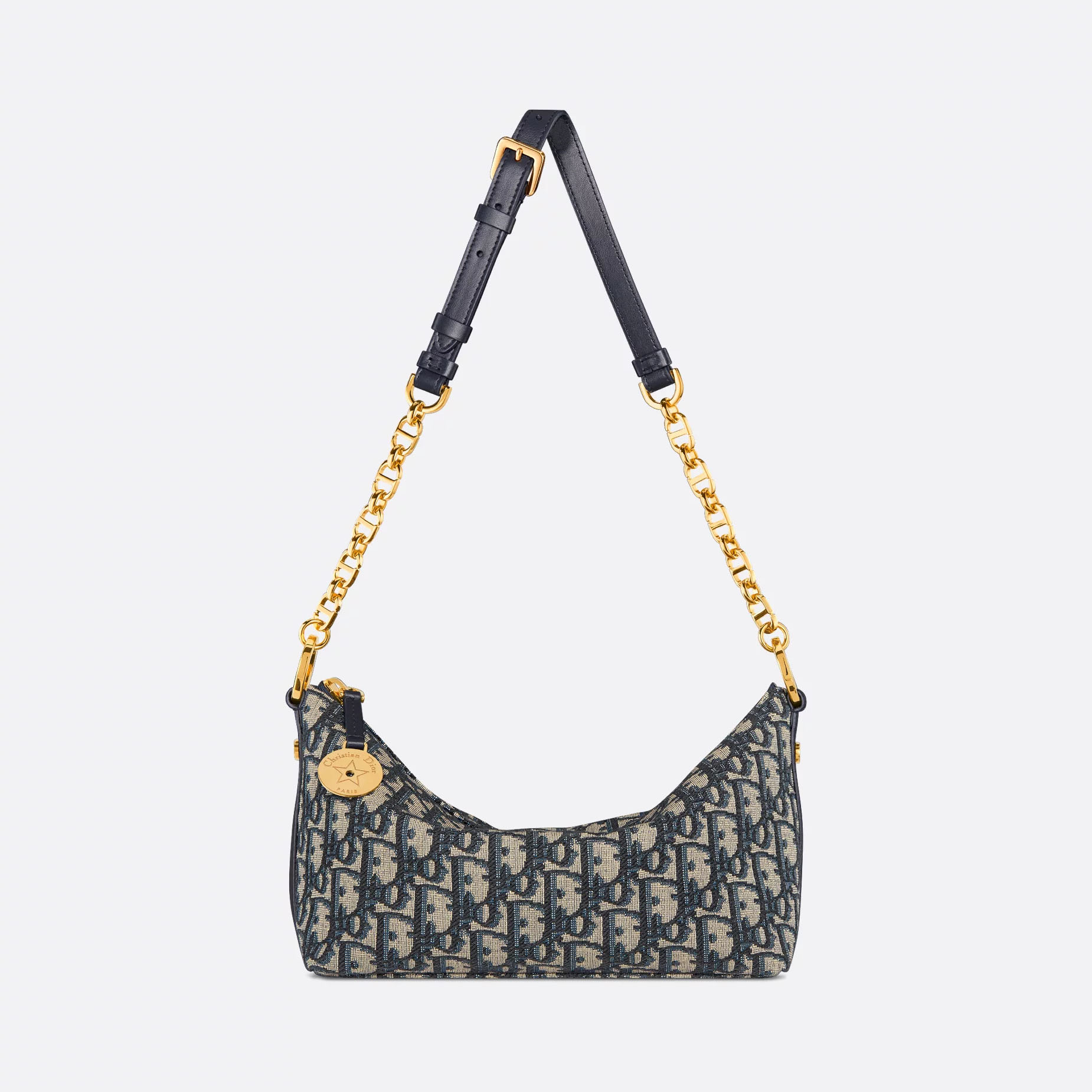 Dior Diorstar Hobo With Chain Blue Oblique Canvas Gold Hardware