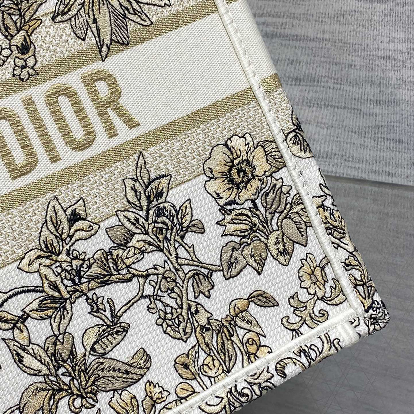 Dior Medium Book Tote White Embroidered with Metallic Thread and Gold Millefiori Unicorn Motif