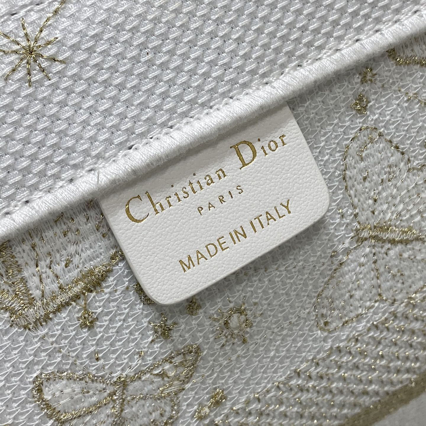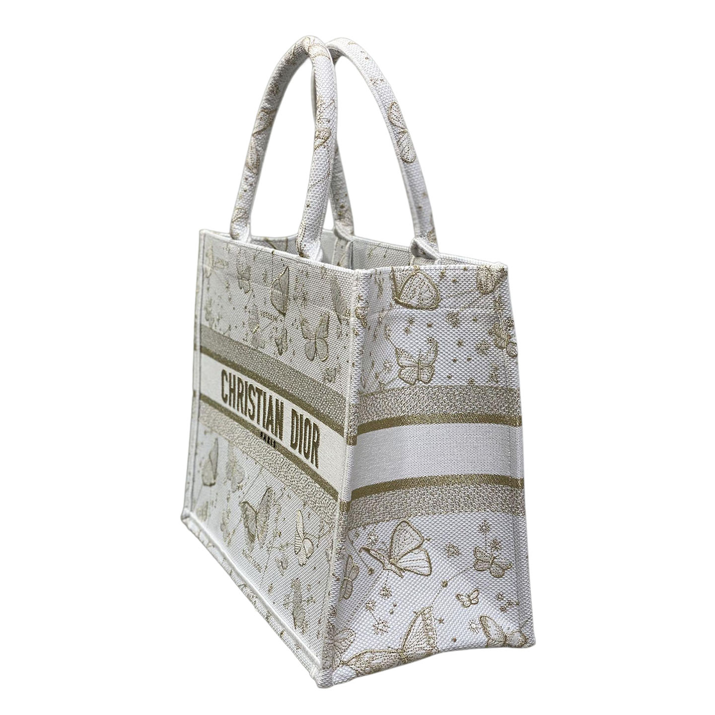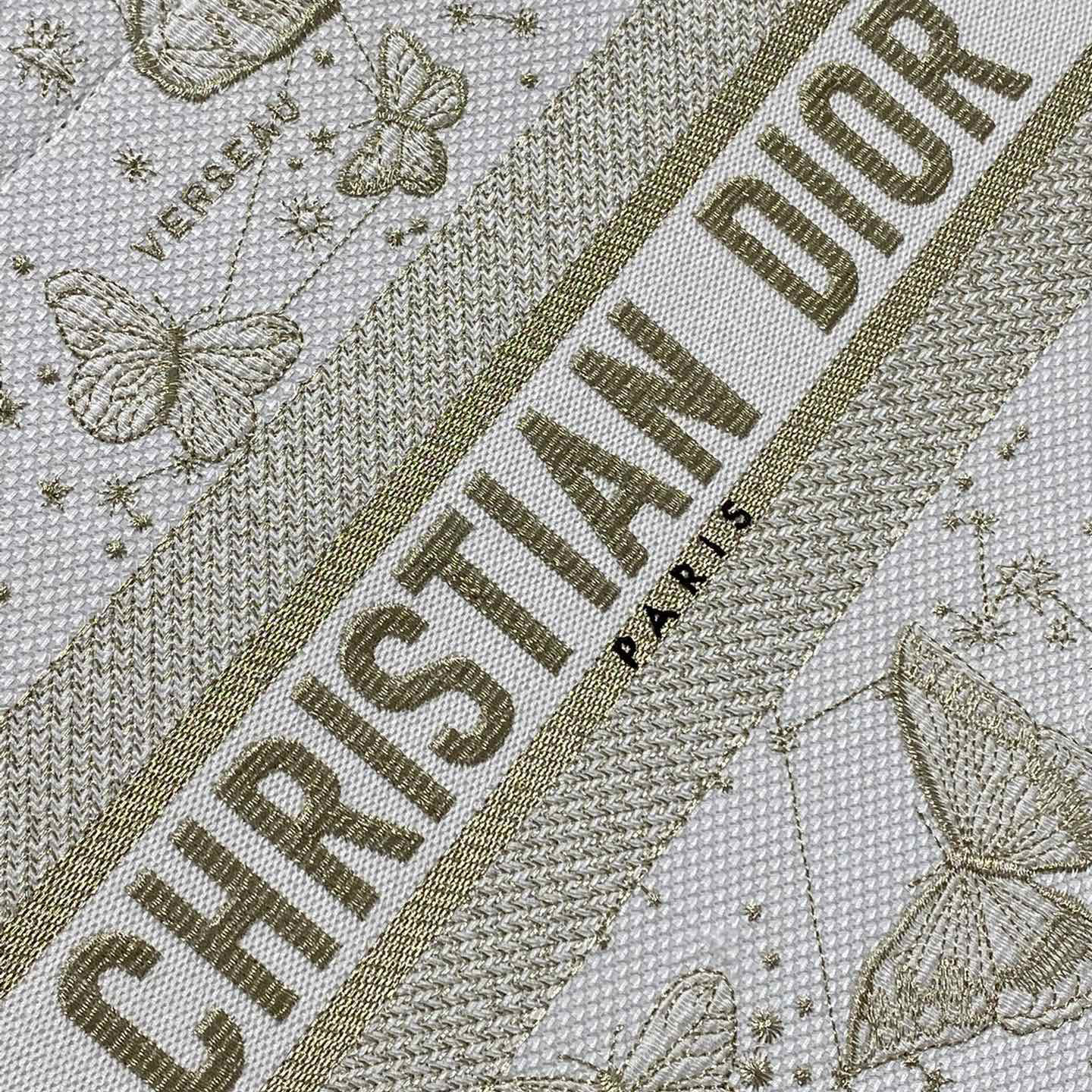 • Dior Medium Dior Book Tote Gold-Tone and White Butterfly Zodiac Embroidery