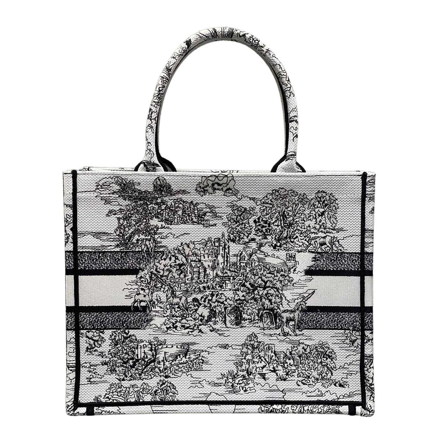 Dior Medium Dior Book Tote White Embroidery with Black Toile de Jouy Scotland Motif Embroidery