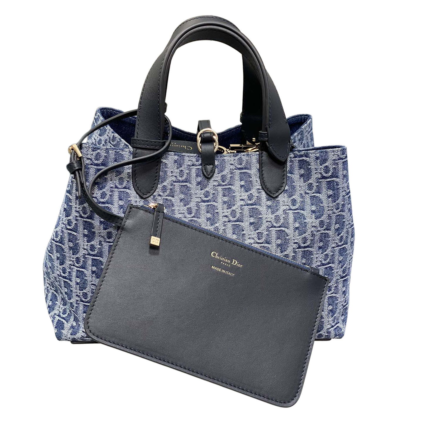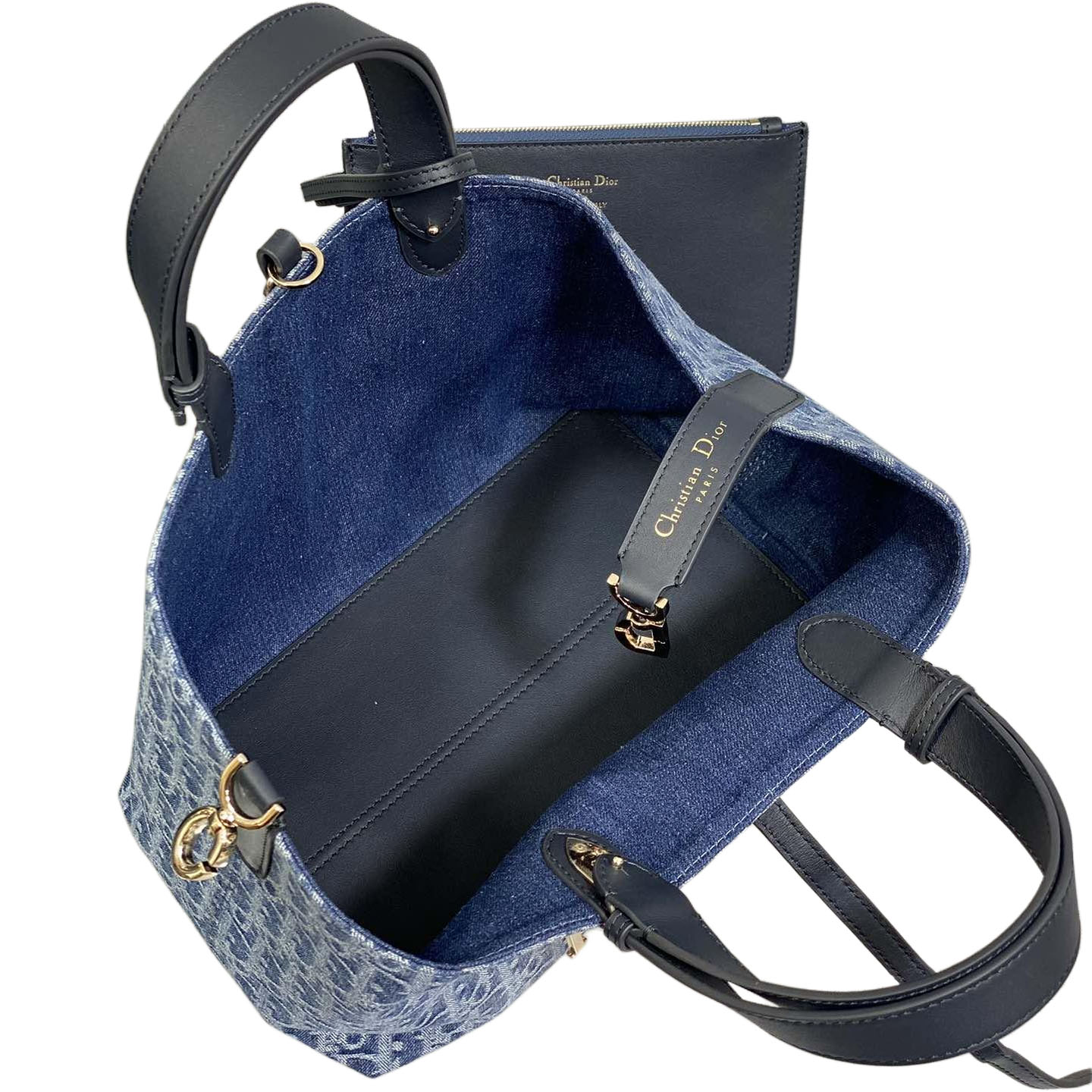 Dior Medium Dior Toujours Bag In Blue Denim Dior Oblique Jacquard With Gold Hardware