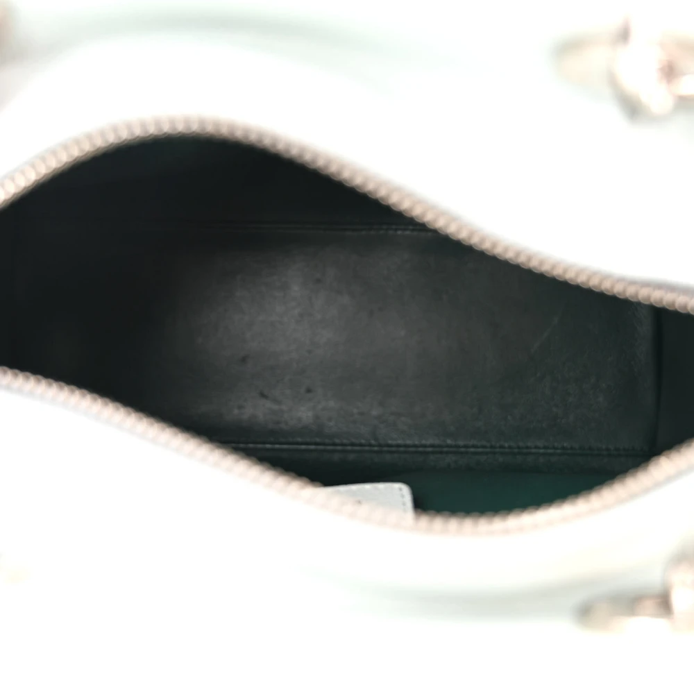 This Dior Medium Lady Dior in White Grained Cannage Calfskin Leather exudes elegance. Silver hardware enhances its clean and sophisticated look. Spacious and versatile, it’s perfect for both day and evening wear. The grained texture adds a contemporary twist to Dior’s iconic Cannage stitching. A luxurious piece that stands the test of time. Elevate your ensemble with this refined bag.