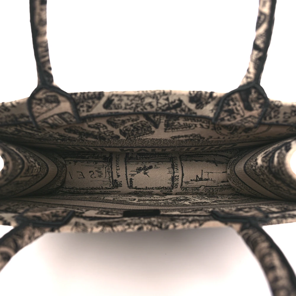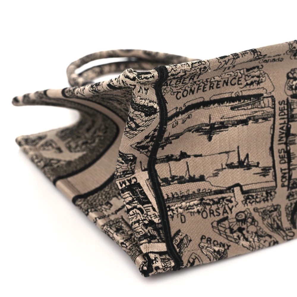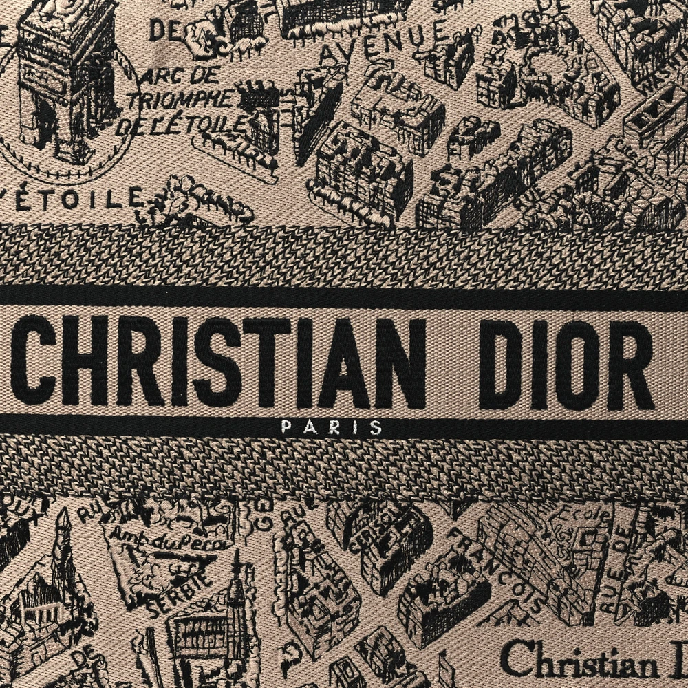 Dior Medium Plan De Paris Book Tote Beige/Black Embroidered Canvas