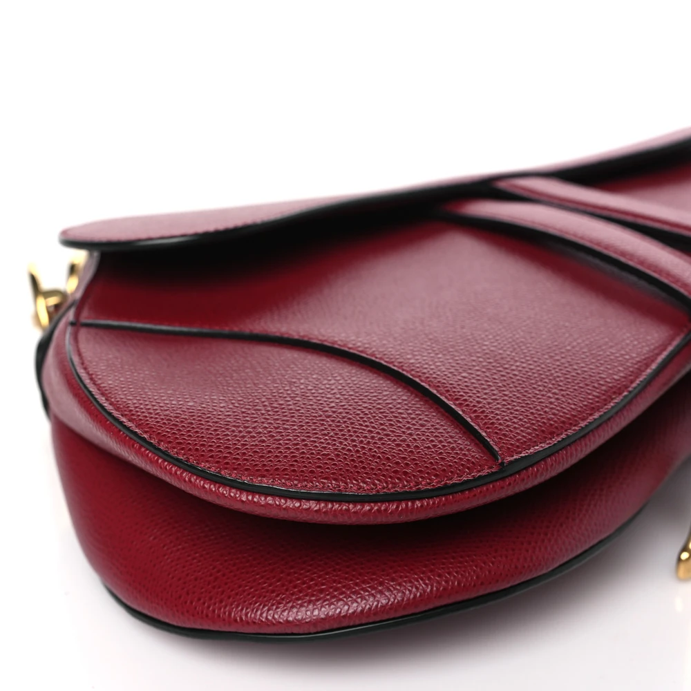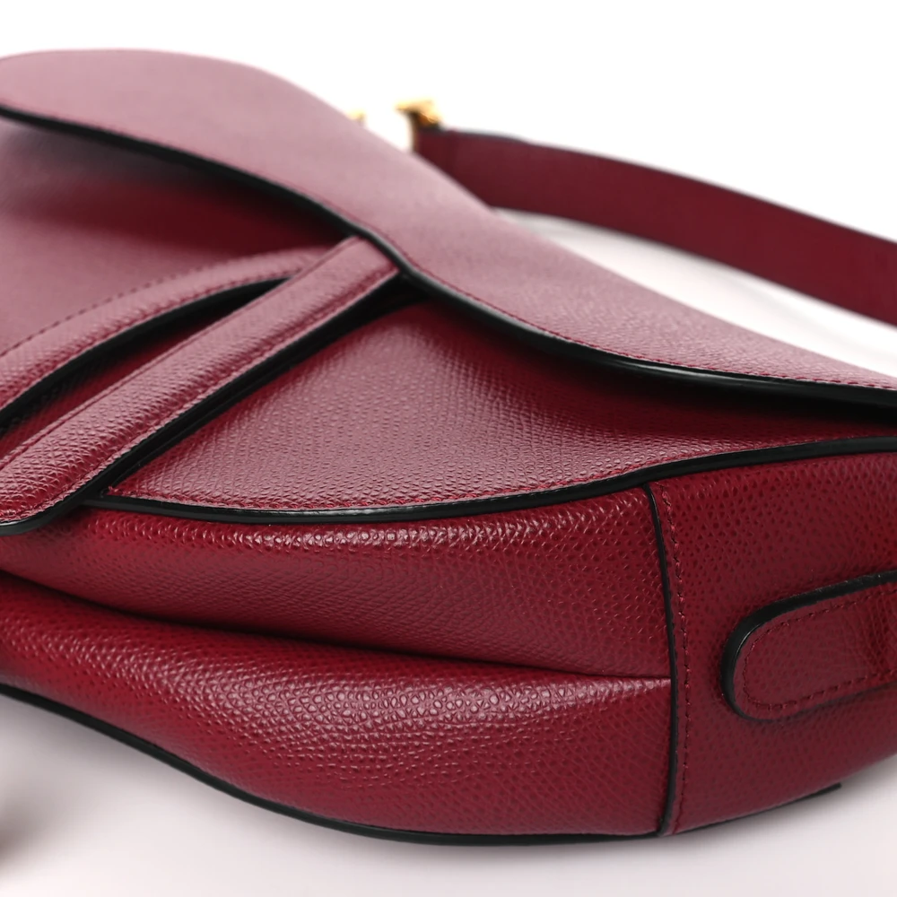 Dior Medium Saddle Bag Red Grained Calfskin Leather Brass Hardware