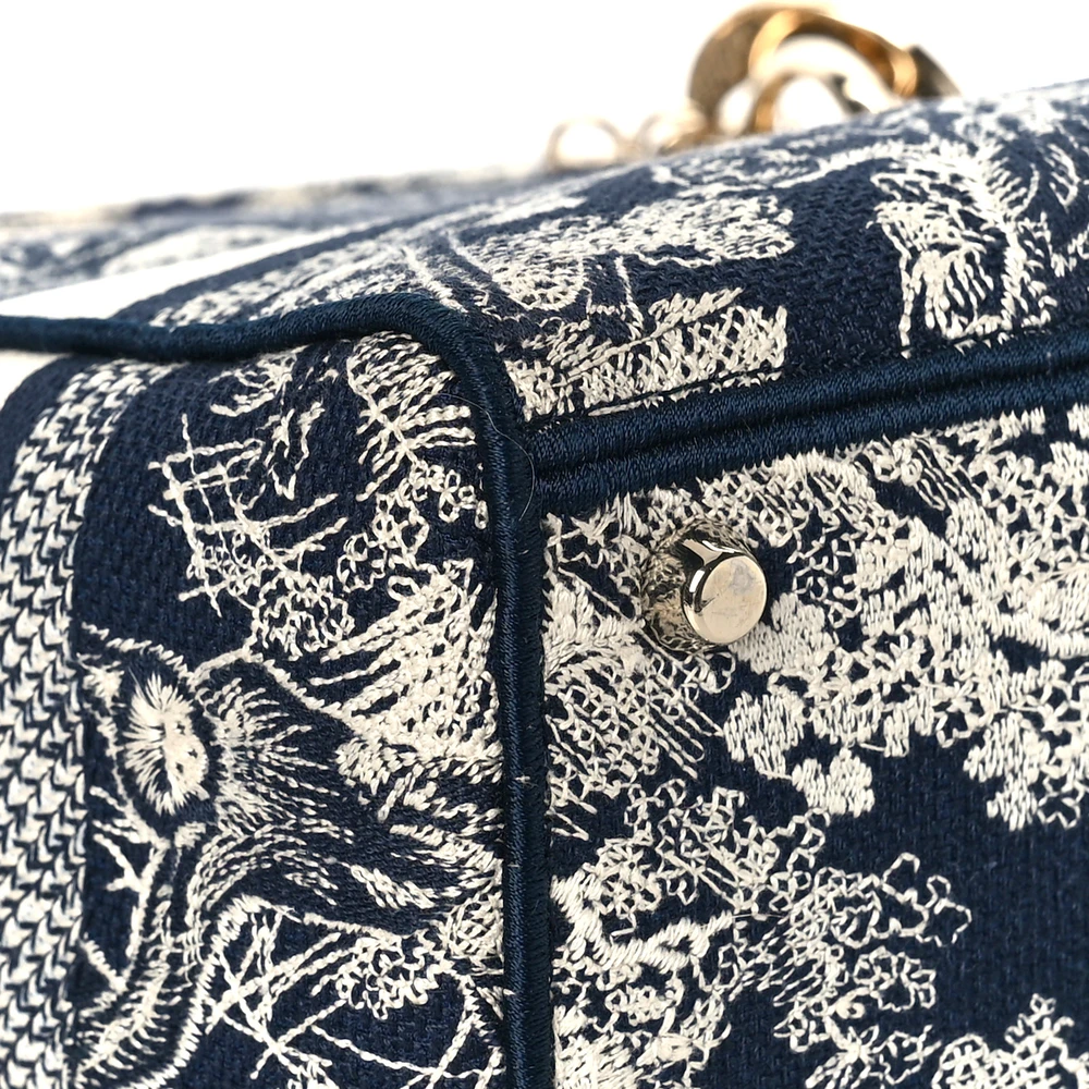 Dior Medium Toile De Jouy Lady D-Lite Blue Embroidered Canvas Gold Hardware