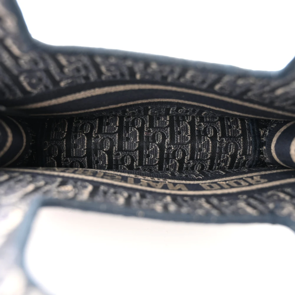 Dior Mini Book Tote Blue Velvet Oblique Embroidered