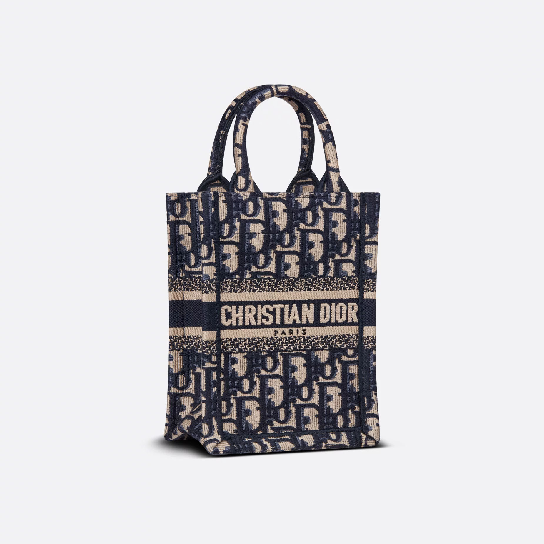 The Dior Book Tote is a House classic and original design by Maria Grazia Chiuri, Creative Director of Christian Dior. The style is fully embroidered with the House’s hallmark blue Dior Oblique motif and showcases the Christian Dior Paris signature. Exemplifying House savoir-faire, the miniature style features an adjustable and removable strap that allows it to be carried by hand, worn over the shoulder or crossbody.