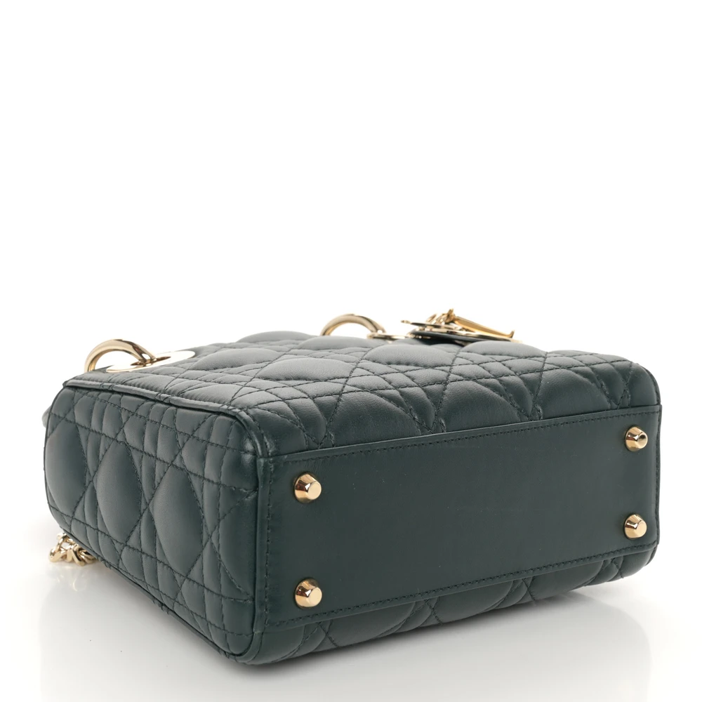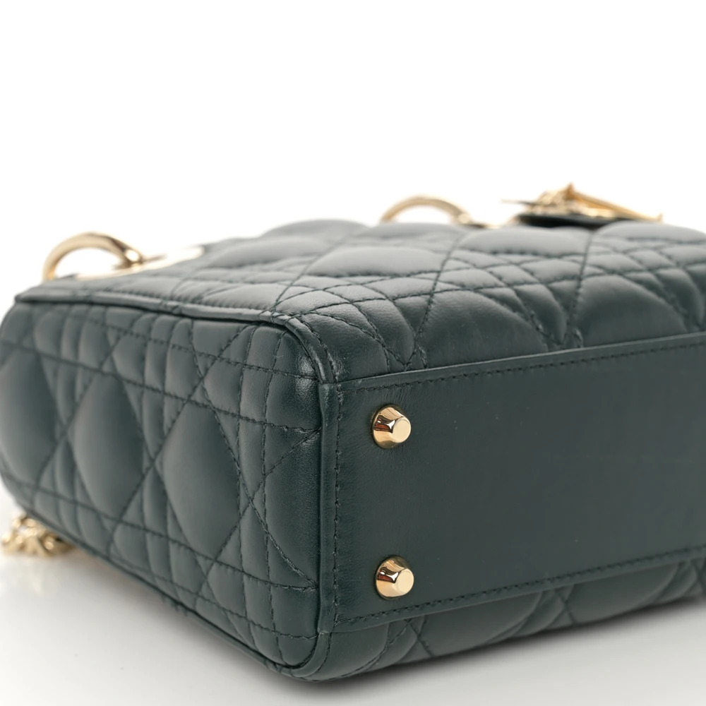 Dior Mini Lady Dior Dark Green Cannage Lambskin Leather Light Gold Hardware