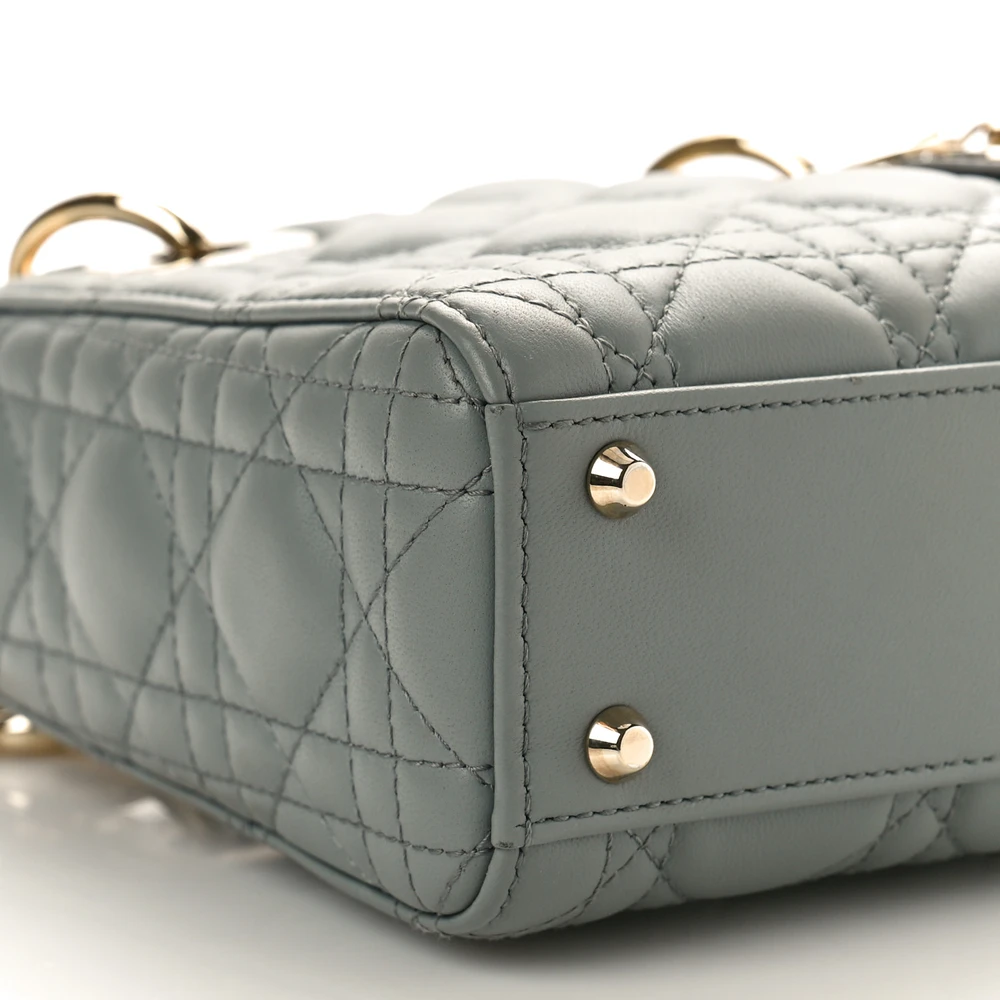 Dior Mini Lady Dior Grey Cannage Lambskin Leather Gold Hardware