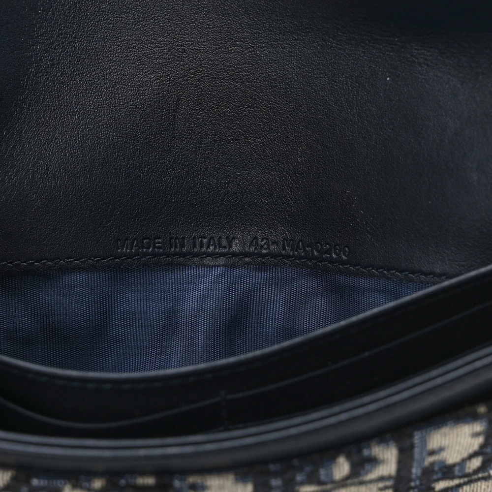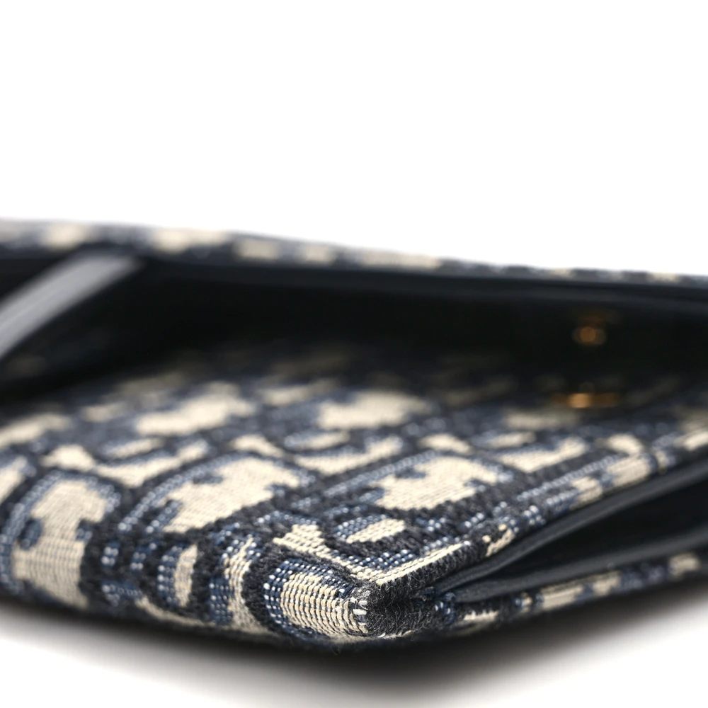 Dior Mini Saddle Chain Long Wallet Blue Oblique Canvas Gold Hardware