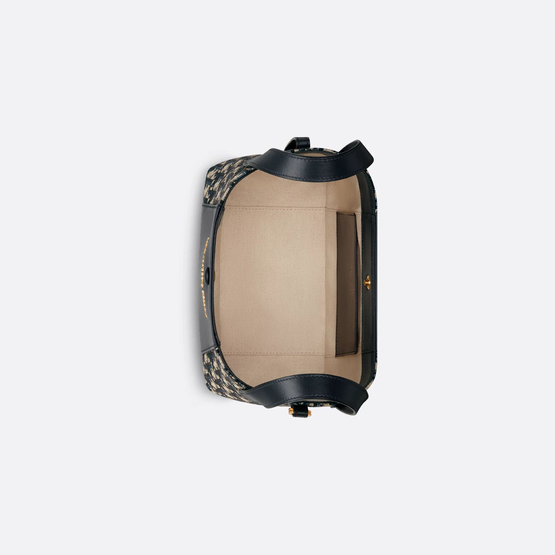 Dior Small Signature Bucket Bag In Blue Dior Oblique Jacquard/Black Grained Calfskin Gold Hardware