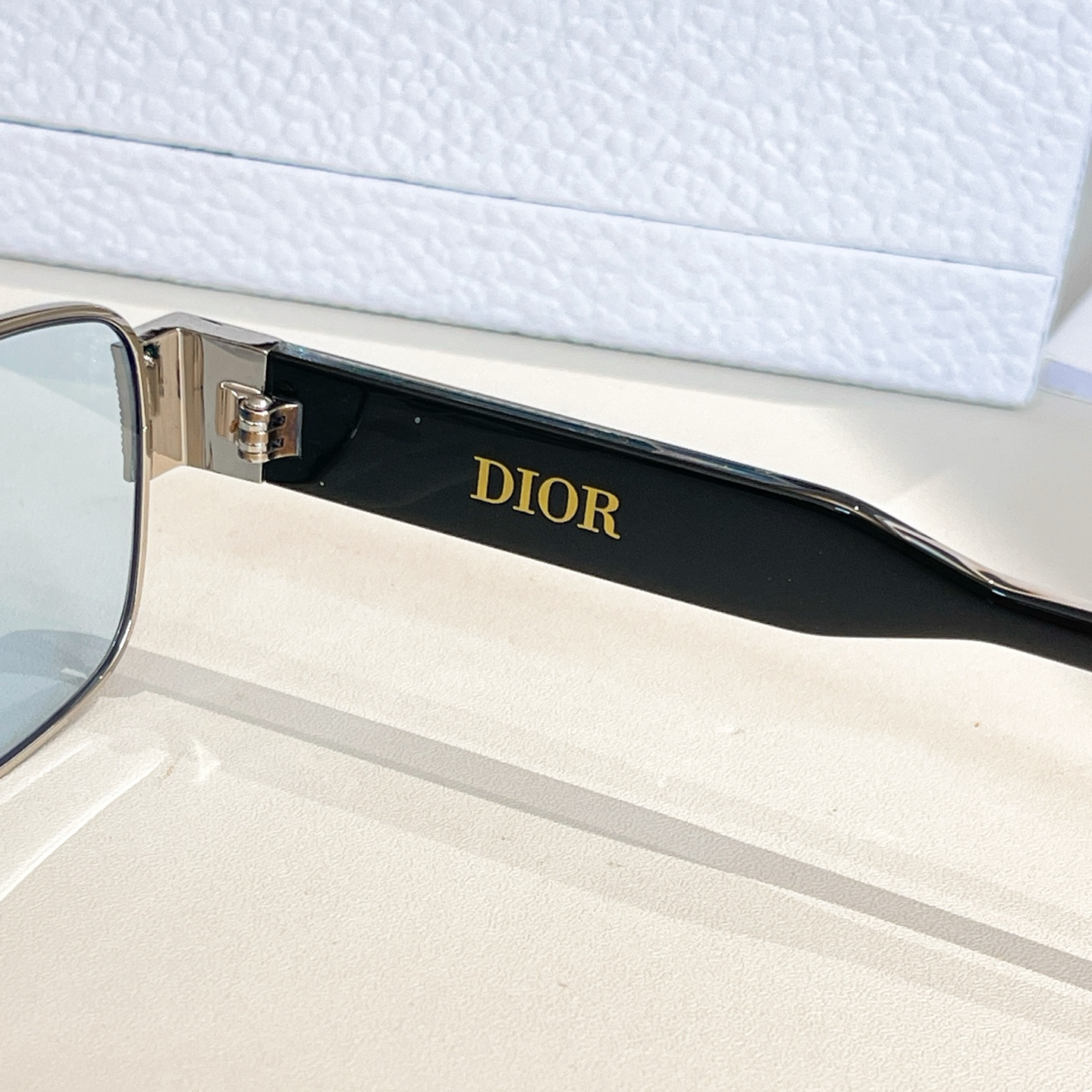 DIOR square frame glasses blue silver/blue light gold/black light gold color Size 54口17-145
