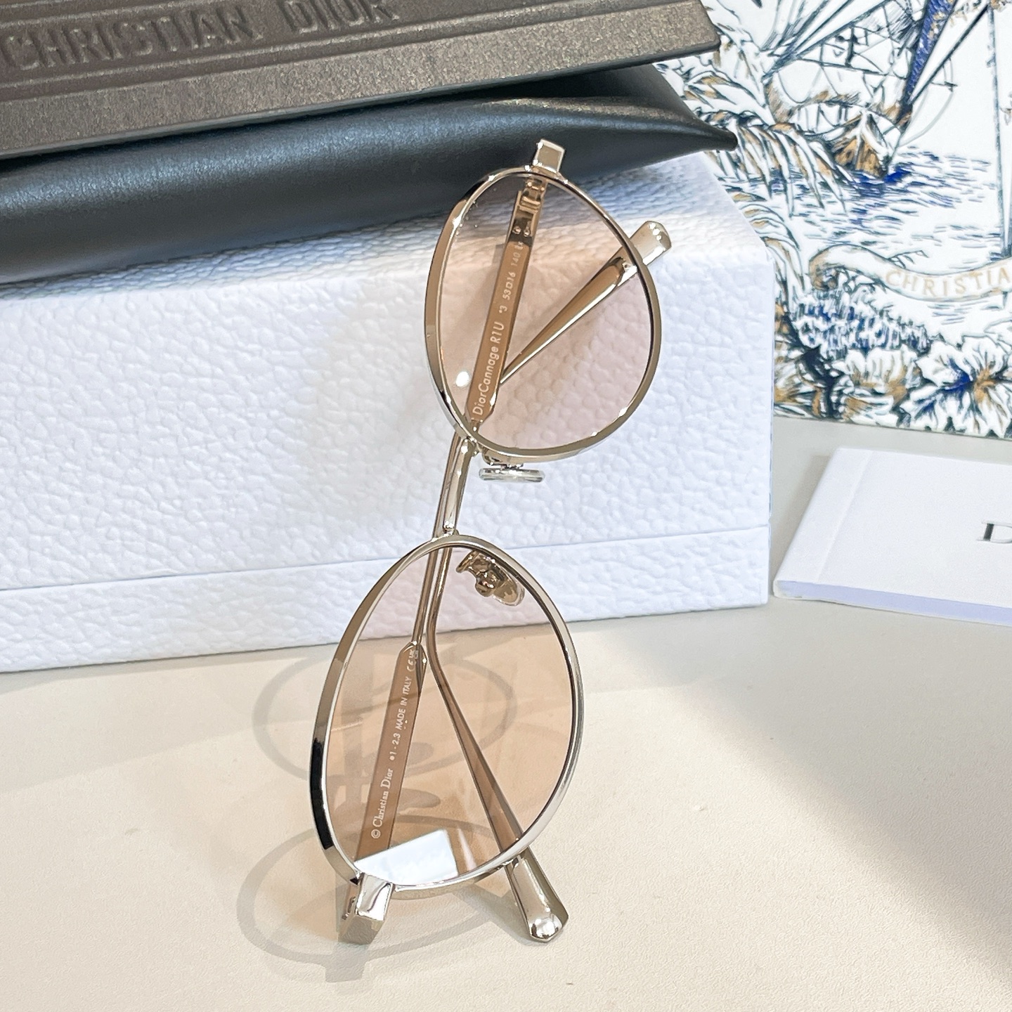 DIOR round frame glasses cream white/white black/black/blue/leopard-print orange color Size 50口23-145