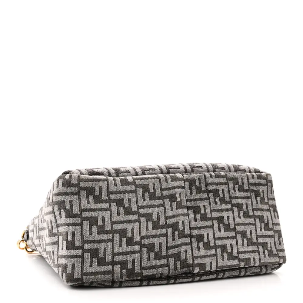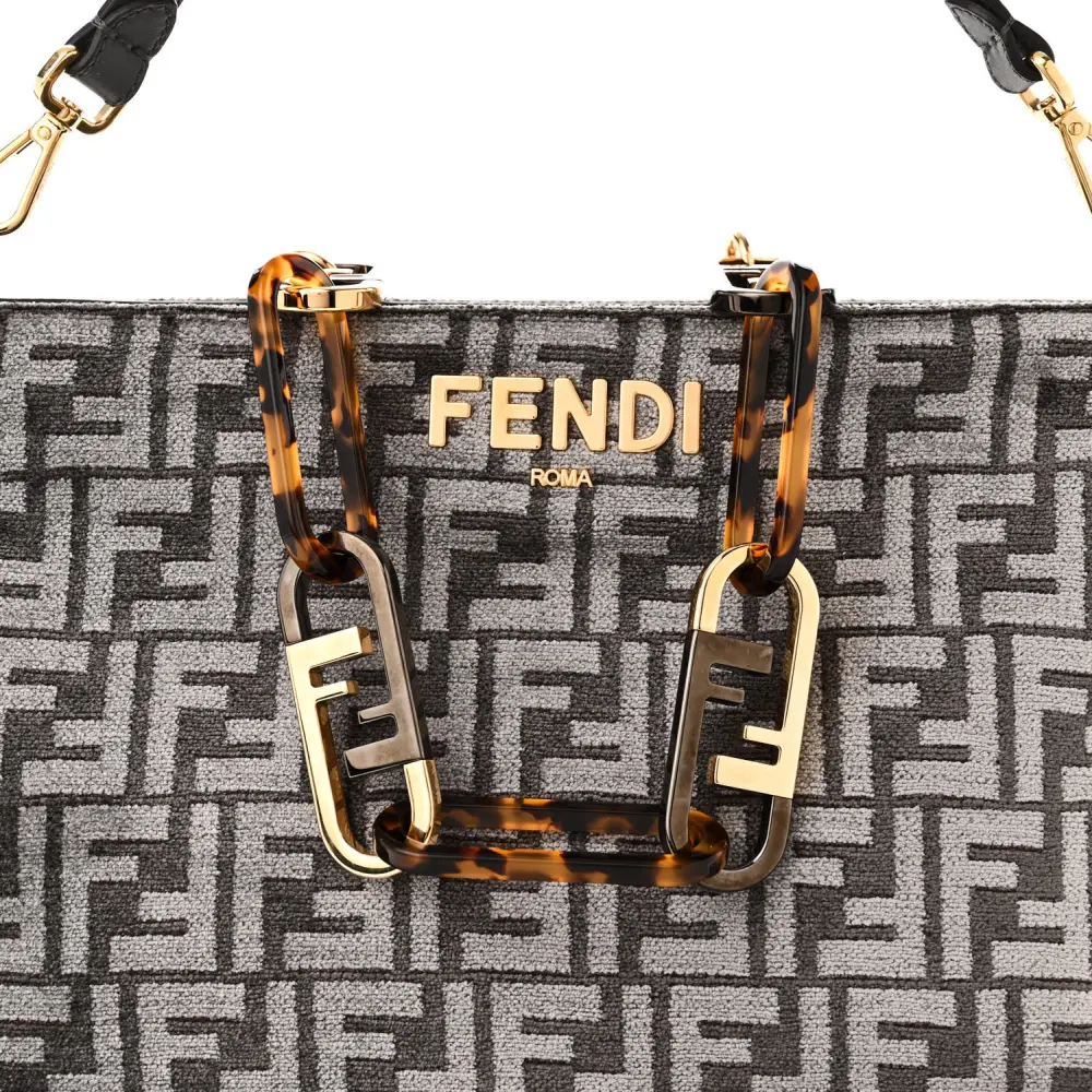 Fendi FF Fendi O’Lock Zipper Anthracite/Asfalto Chenille, Vitello Seta Leather, & Plexiglass Mixed Metal Hardware