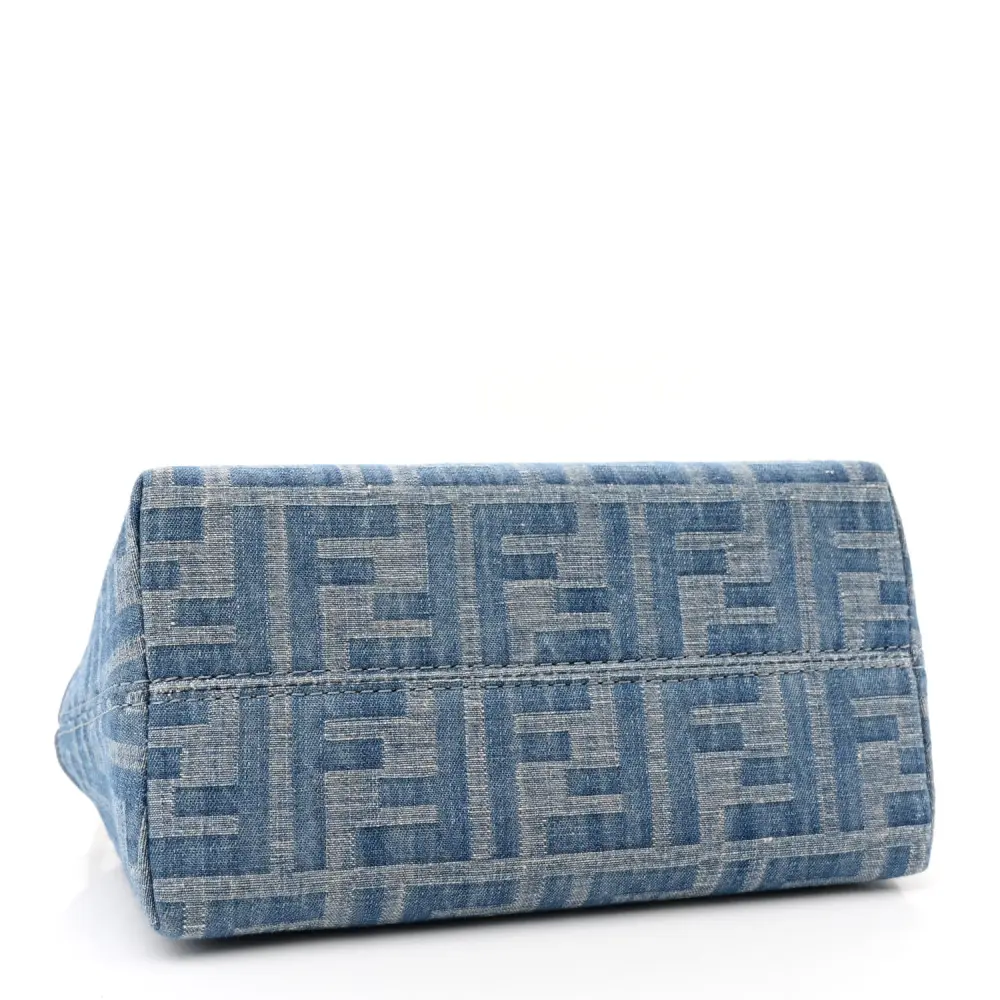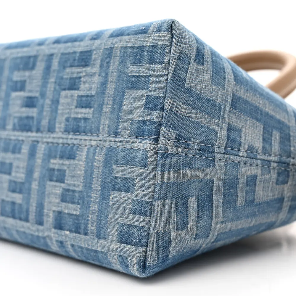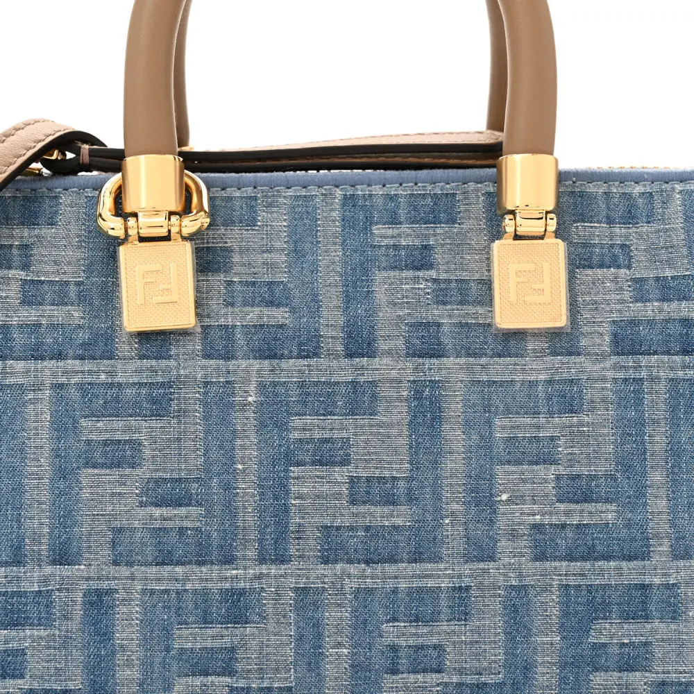 Fendi FF Mini By The Way Top Handle Boston Bag Tortora/Nuvola Denim & King Vitello Leather Gold Hardware