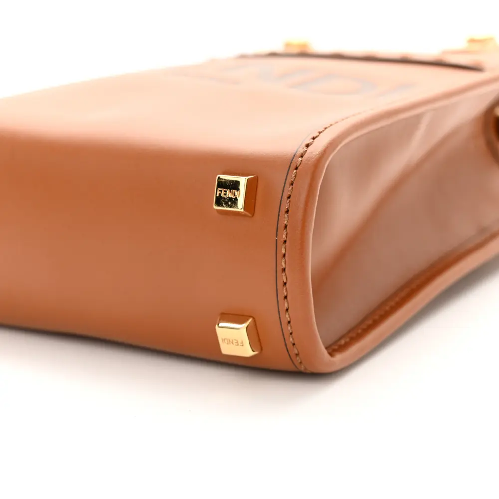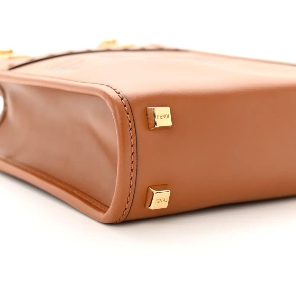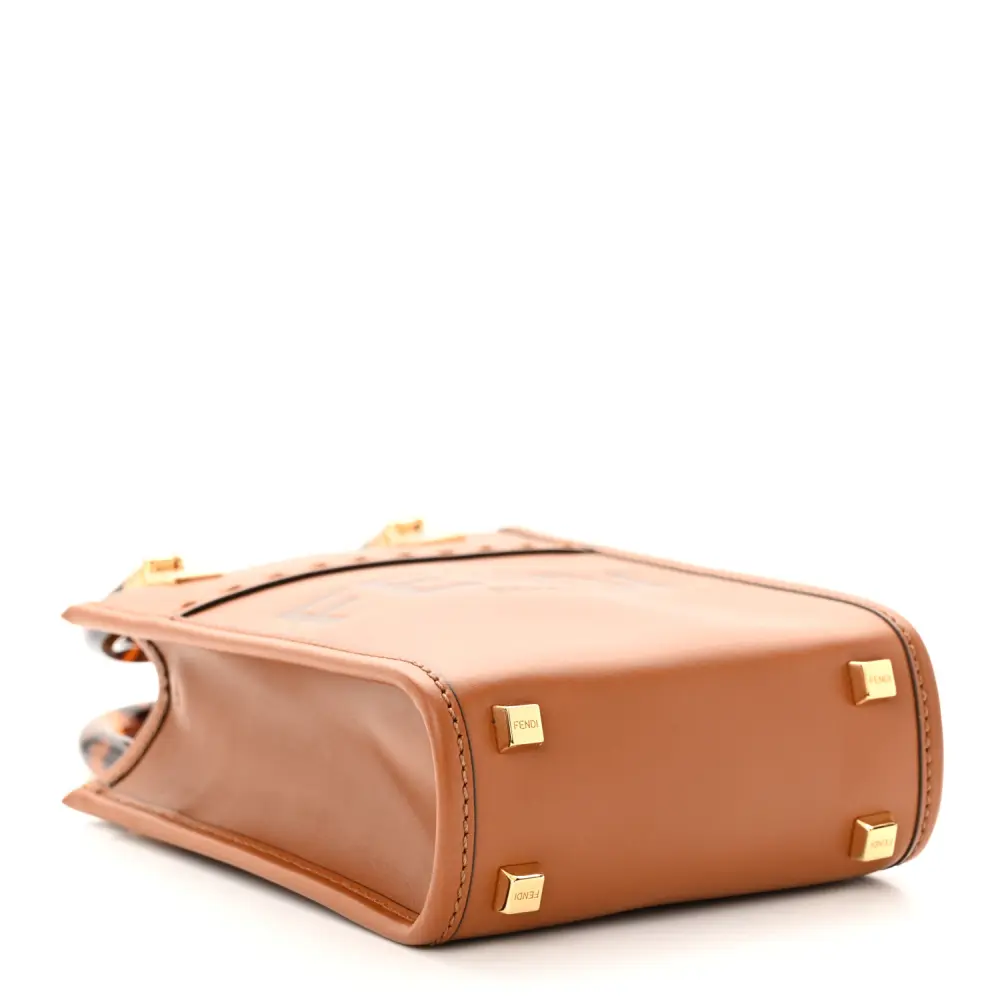 • Fendi Mini Logo Embossed Fendi Sunshine Shopper Tote Cuoio King Vitello Leather & Plexiglass Gold Hardware