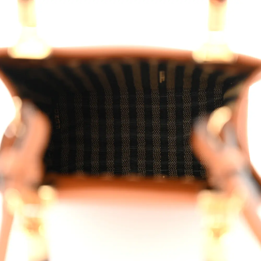 Fendi Mini Logo Embossed Fendi Sunshine Shopper Tote Cuoio King Vitello Leather & Plexiglass Gold Hardware