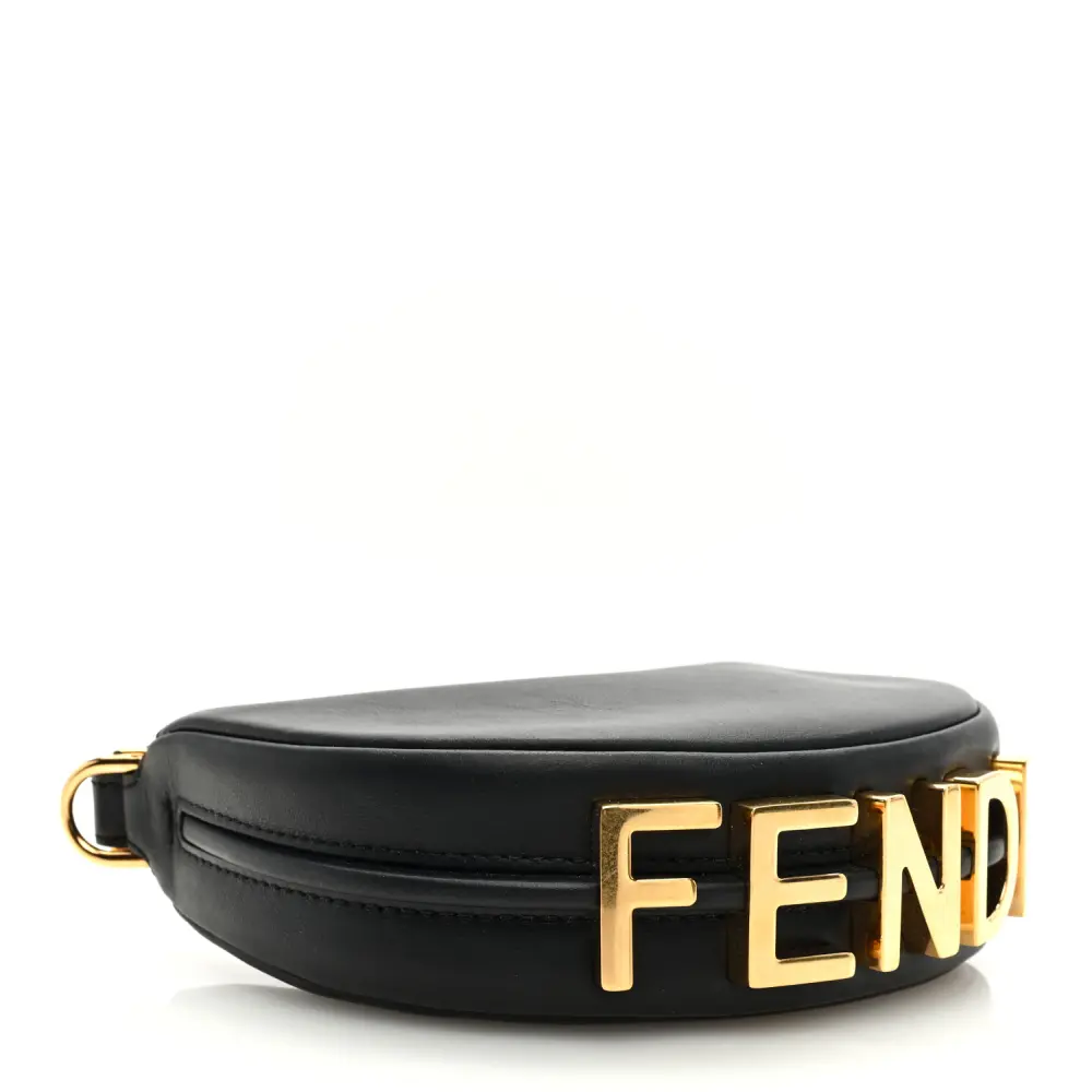 Fendi Nano Fendigraphy Hobo Charm Black Matte Grace Vitello Leather Gold Hardware