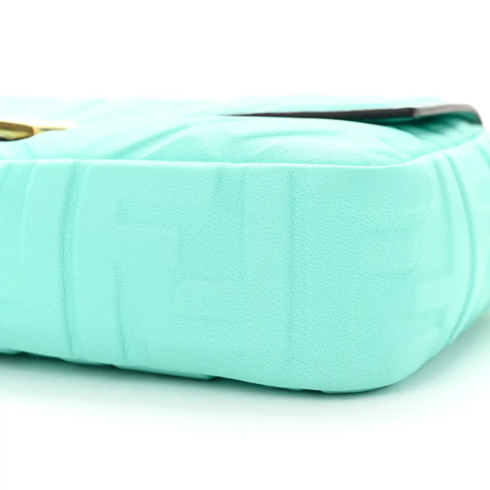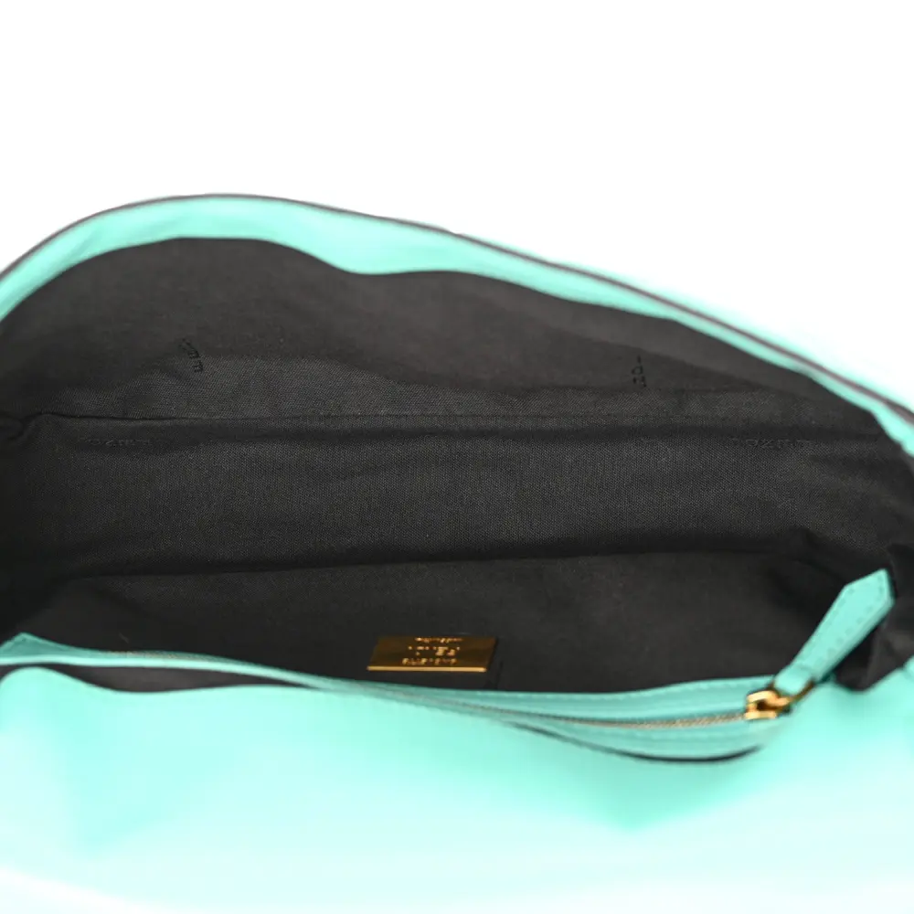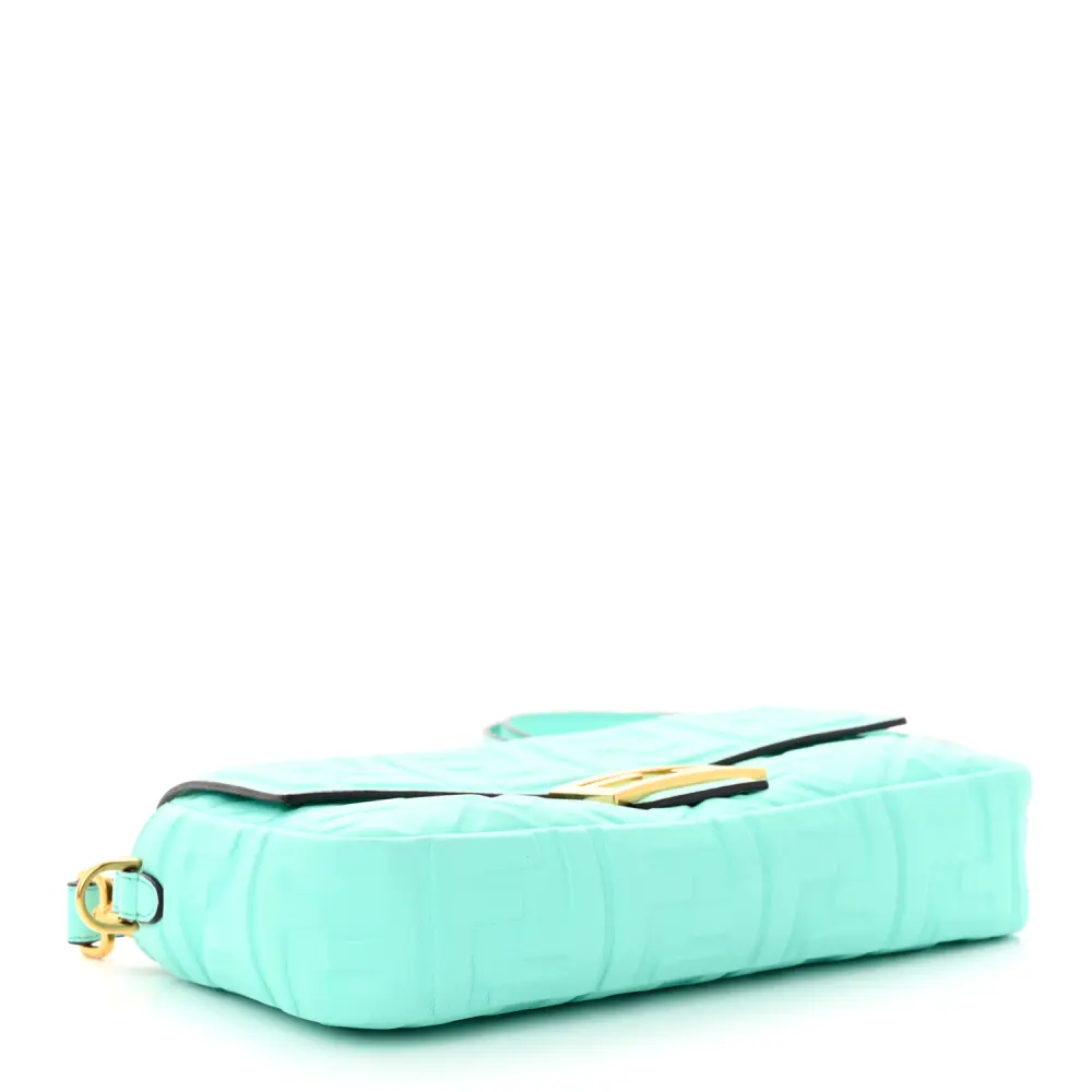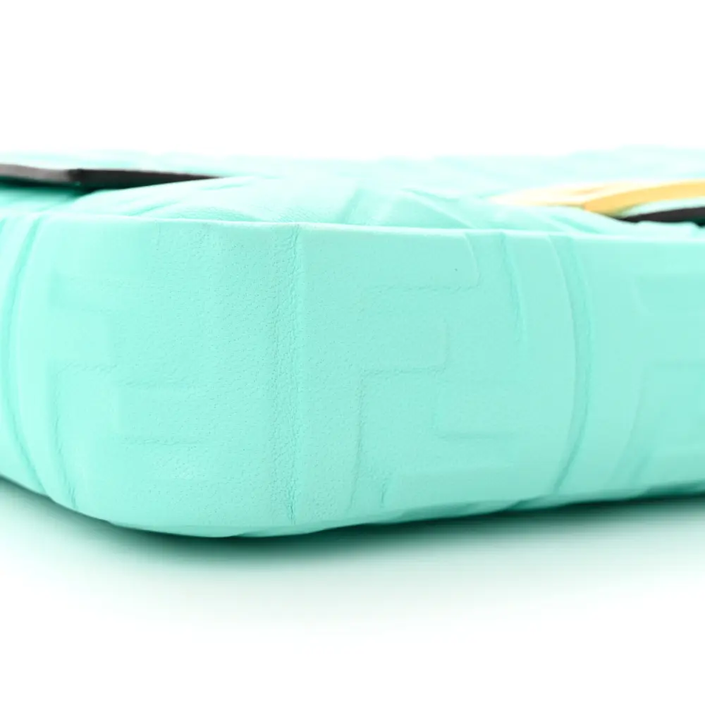 This Fendi Petite Peekaboo I SEE U Satchel in Tiffany is crafted in FF 1974 Embossed Nappa Leather. Gold hardware accents the timeless design. Spacious interior accommodates daily essentials effortlessly. The iconic silhouette transitions seamlessly from day to night. Perfect for those who value classic luxury with a contemporary twist. A refined choice for any occasion.