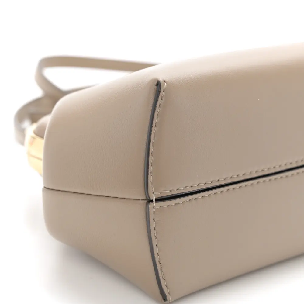 This Fendi Small Fendi First Bag in Dove Grey Shiny Nappa Leather exudes luxury. Gold hardware enhances its minimalist design. The statement clasp adds a unique touch to its structured shape. Spacious enough for daily essentials, it’s practical and stylish. Use the detachable strap for versatile carrying options. A must-have for timeless elegance.