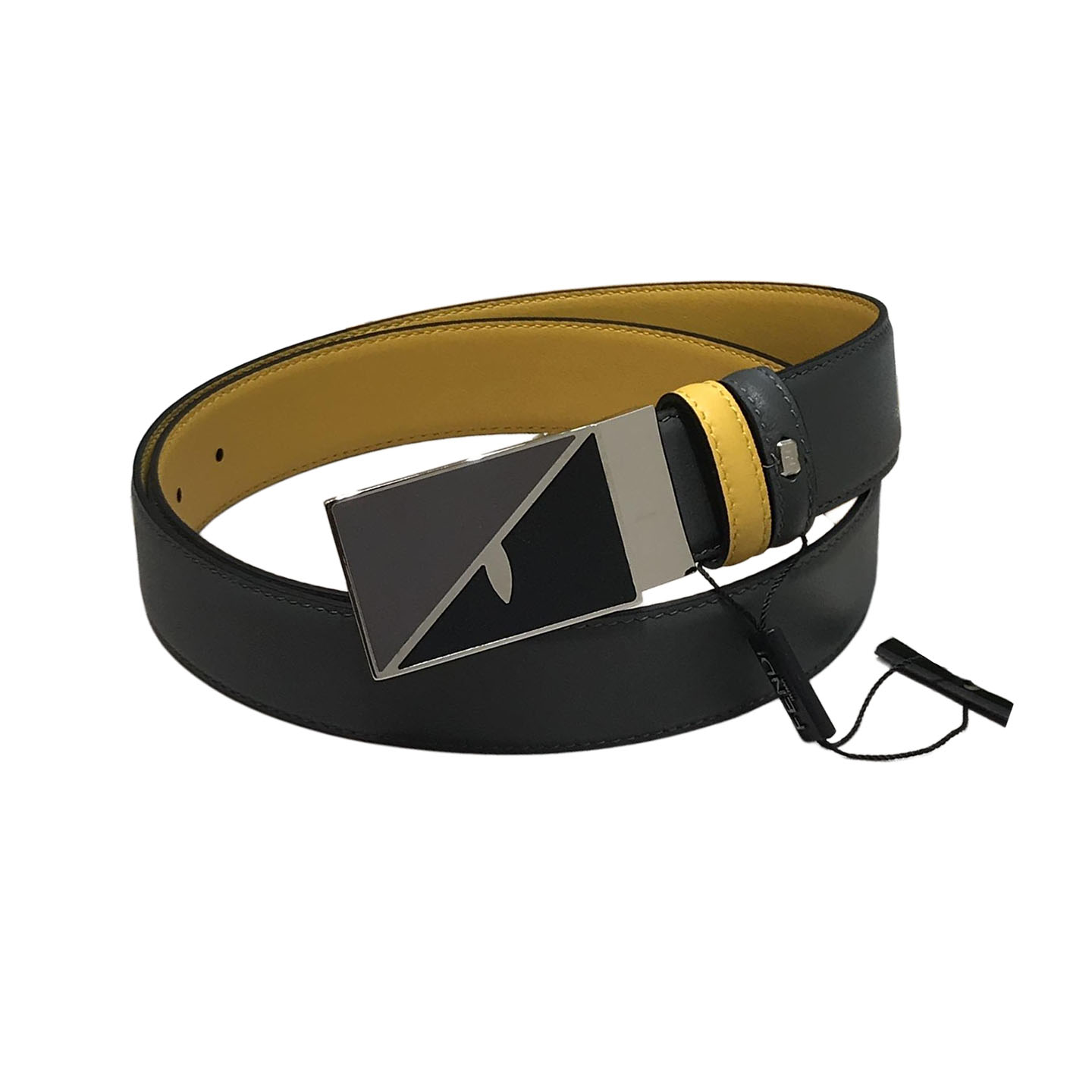 Fendi Men’s FF Monster Eyes Reversible Belt In Blue/Black/Yellow Calfskin With Silver Hardware 35mm