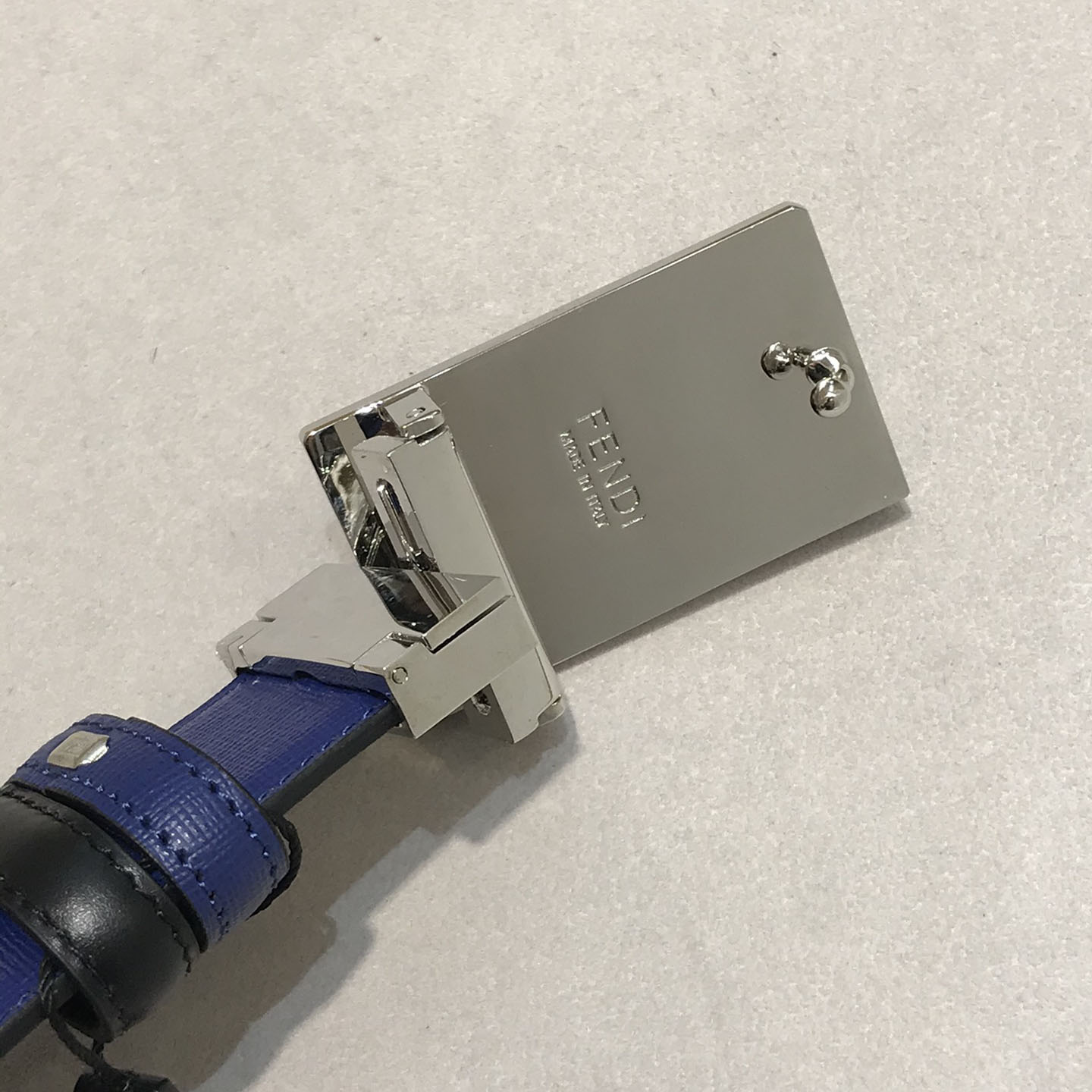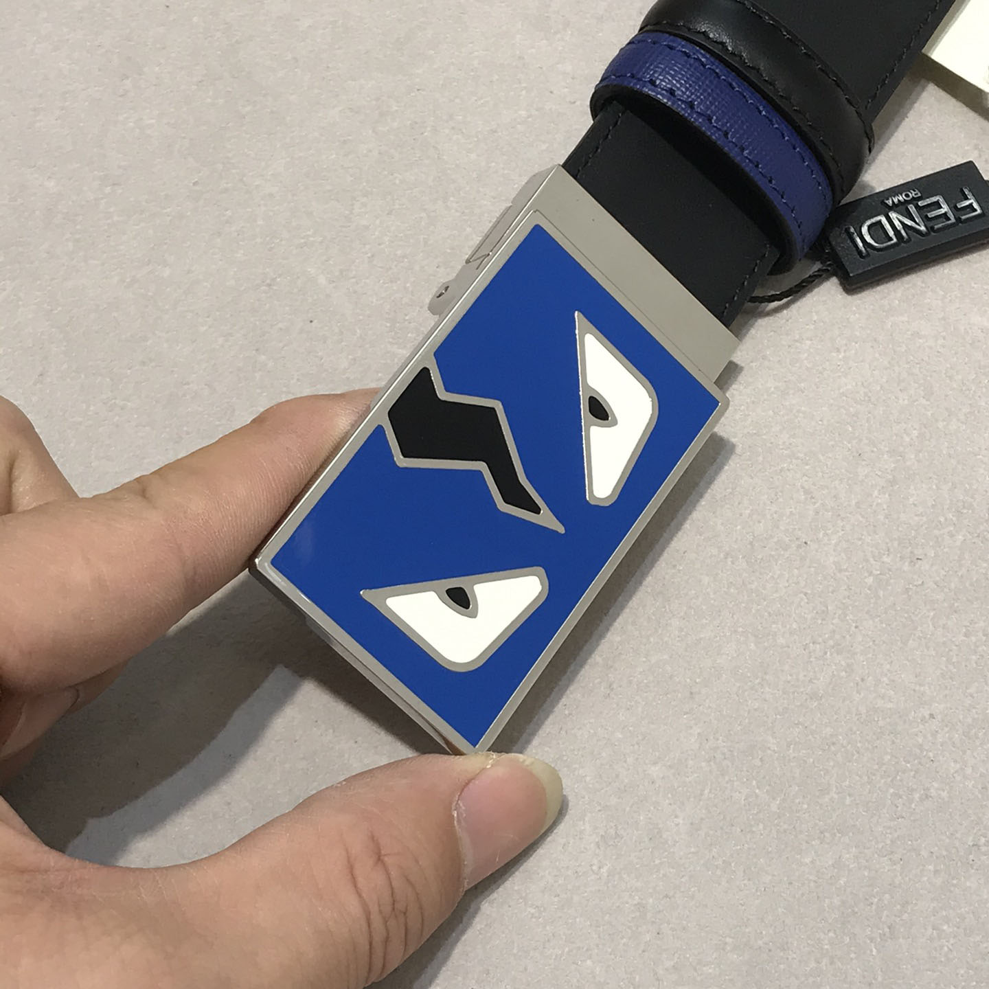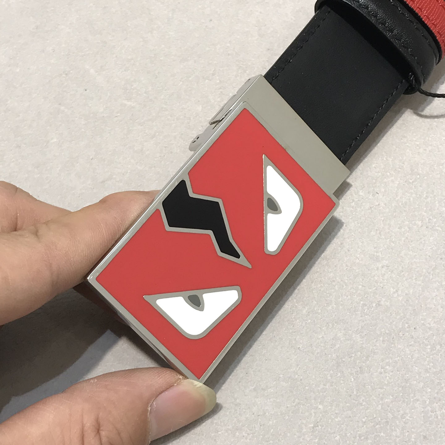 Fendi Men’s FF Monster Eyes Reversible Belt In Red/Blue/Black Calfskin With Silver Hardware 35mm