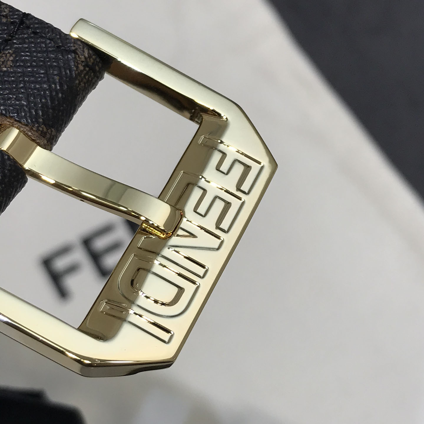 Fendi Men’s Square Buckle Belt In Black/Brown Calfskin And Monogram Canvas With Gold/Silver Hardware 35mm