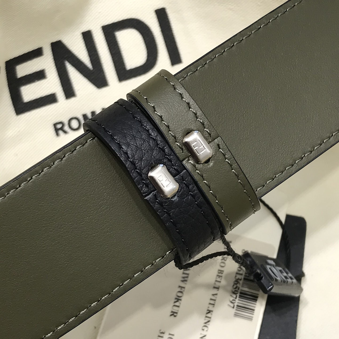 Fendi Men’s Square Buckle Belt In Black/Olive Litchi Grain Calfskin With Silver Hardware 38mm