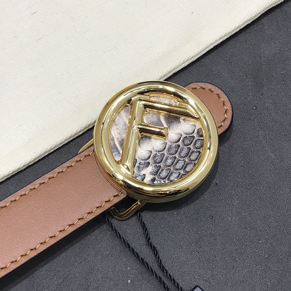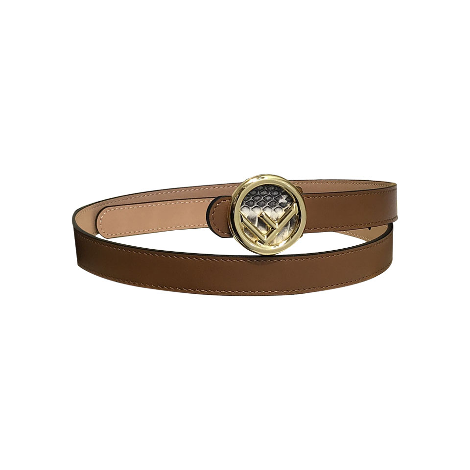 Fendi Women’s F Logo Round Buckle Belt In Black/Brown/Grey/Pink Calfskin With Gold/Silver Hardware 20mm