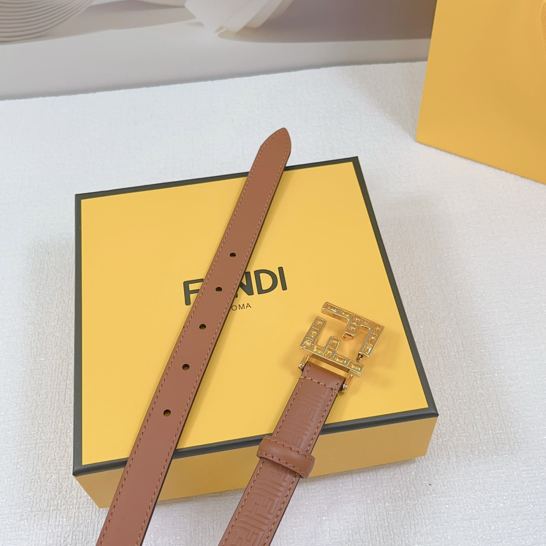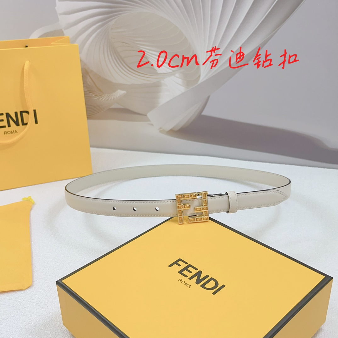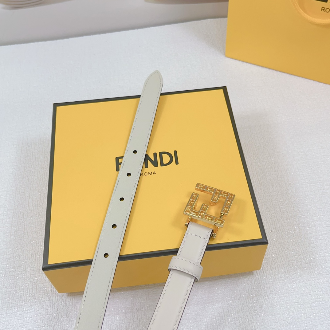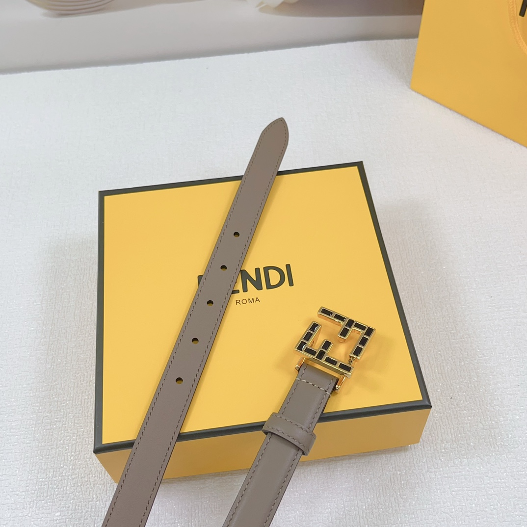 Fendi Women’s FF Squared Buckle Belt In Black/Brown/Grey/Beige/White Calfskin With Gold Hardware 20mm