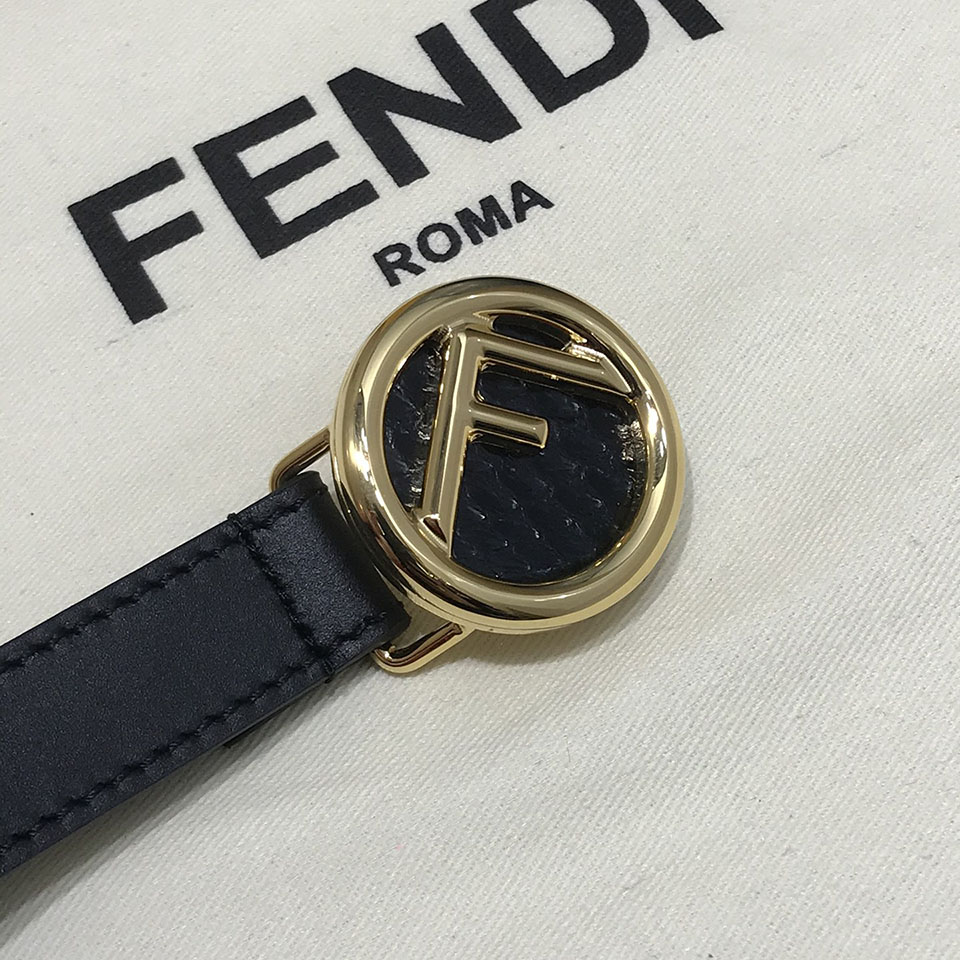 Fendi Women’s F Logo Round Buckle Belt In Black/Brown/Grey/Pink Calfskin With Gold/Silver Hardware 20mm