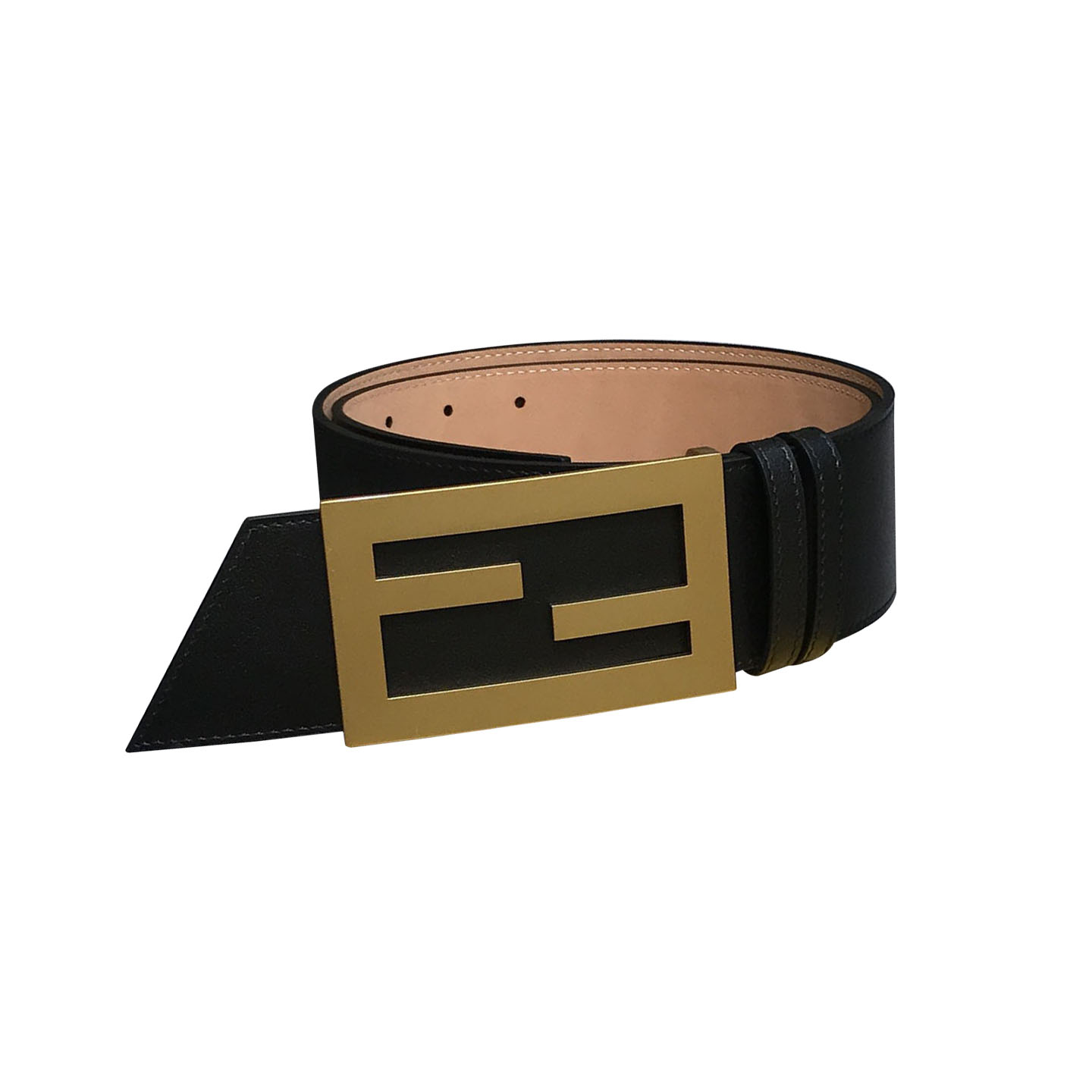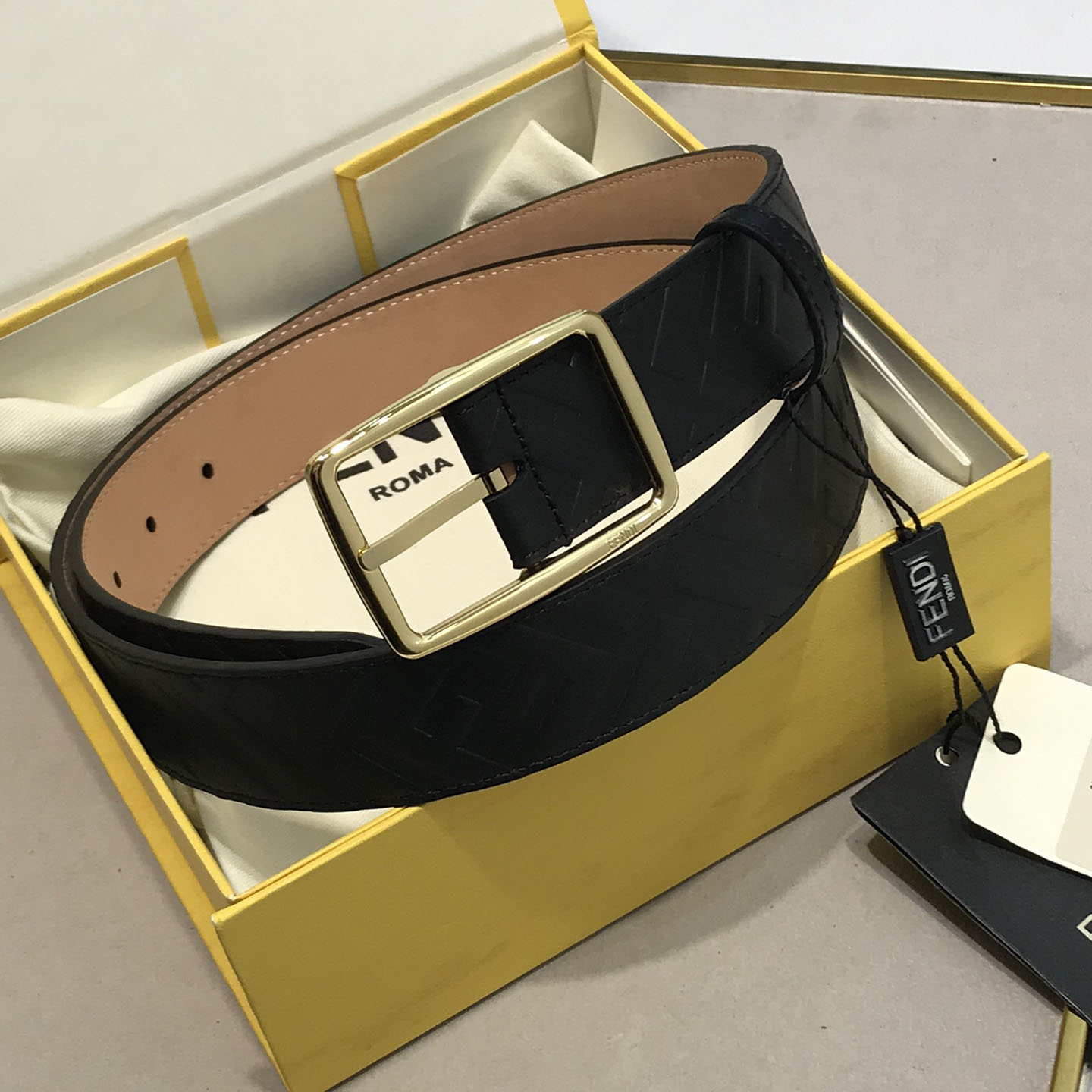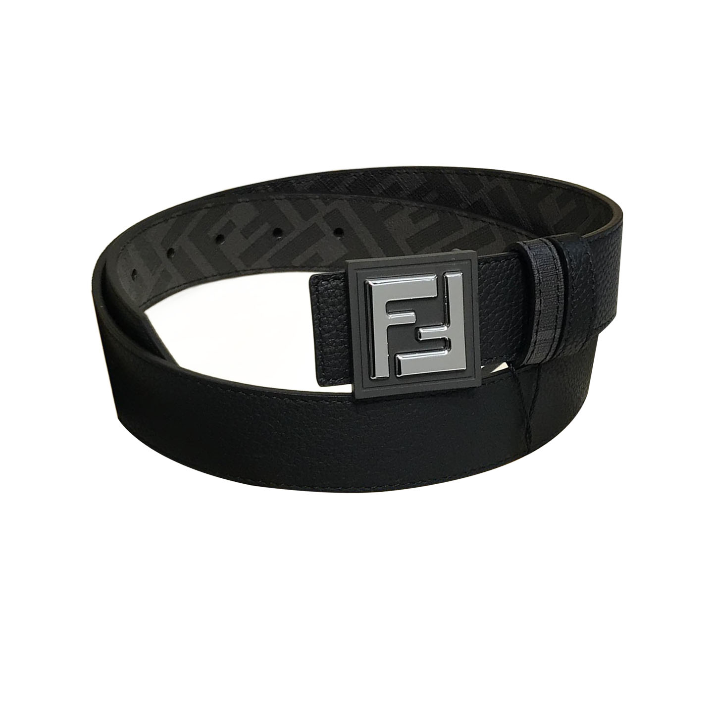 Fendi Men’s Rectangle Buckle Belt In Black FF Calfskin With Gold/Silver Hardware 35mm